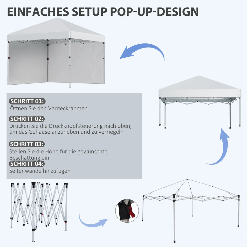 - ✔ Zwei abnehmbare Wände des Faltpavillons zum Schutz vor Wind und Regen und als Blickschutz