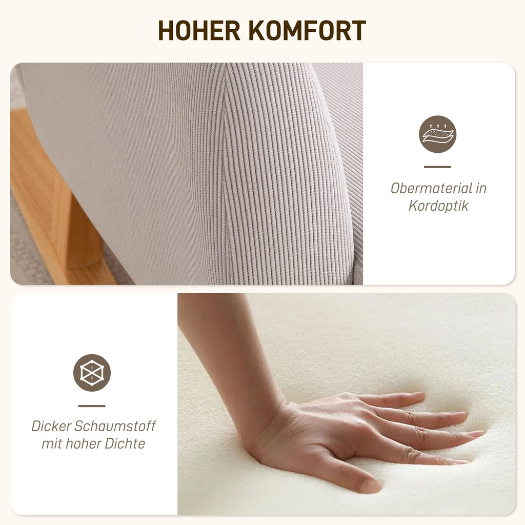 - Cordstoff mit hochdichtem Schaumstoff für überragenden Komfort