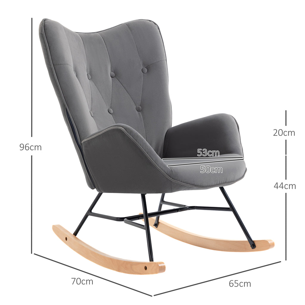 HOMCOM Schaukelstuhl mit Steppung, Holzkufen, Samtoptik, bis 150 kg, Dunkelgrau