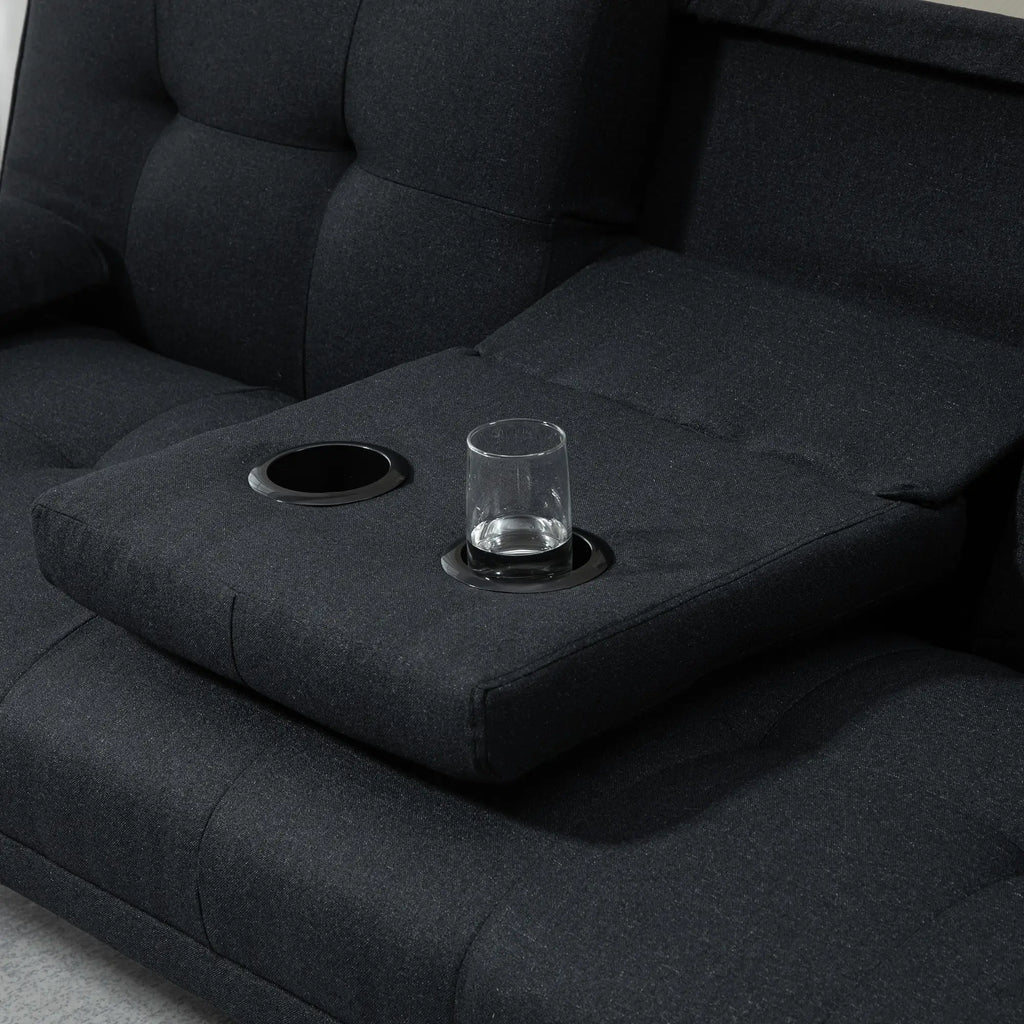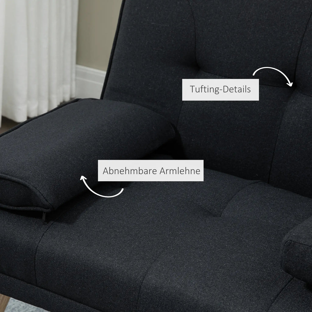 Ob für gesellige Abende mit Freunden oder entspannte Nächte, dieses elegante Schalfsofa von HOMCOM bietet Platz für bis zu drei Personen. Die dreifach verstellbare Rückenlehne ermöglicht Ihnen, mühelos zwischen Sitzen, Zurücklehnen und Schlafen zu wechseln. Der robuste Rahmen und die Massivholzfüße garantieren Stabilität, während die dick gepolsterte Sitzfläche höchsten Komfort bietet. Zudem verwandelt sich der Mittelteil der Rückenlehne in einen praktischen Beistelltisch mit Getränkehaltern.