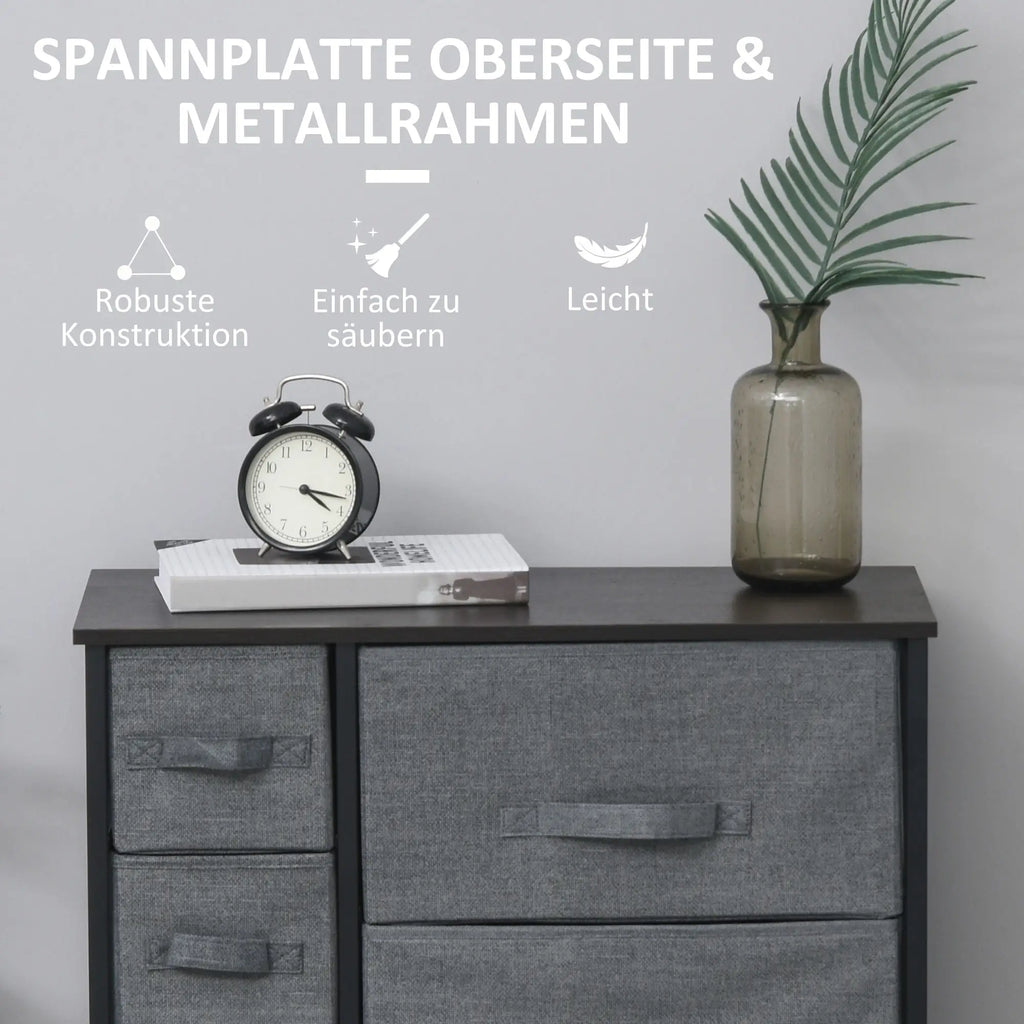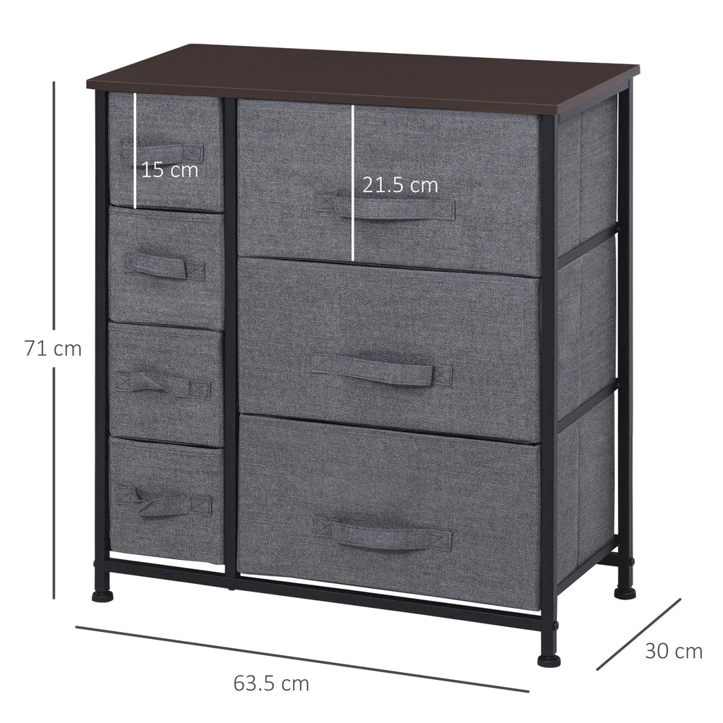 HOMCOM Kommode mit 7 faltbaren Stoffschubladen, Vlies, Metallgestell, 63,5 x 30 x 71 cm, Dunkelgrau