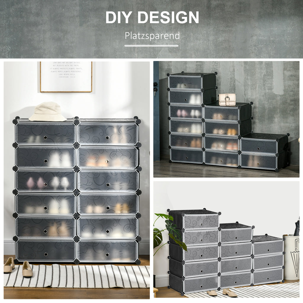 Entdecke die Freude am DIY und schaffe variable Aufbewahrungsmöglichkeiten mit dem modularen Schuhregal von HOMCOM. Es besteht aus langlebigem Kunststoff-Material, belastet die Natur nicht. Der robuste Metallrahmen gewährleistet eine langjährige Nutzung. Zudem hilft es dabei, Spielzeug und weitere Artikel zu sortieren, um Ordnung in dein Zuhause zu bringen.