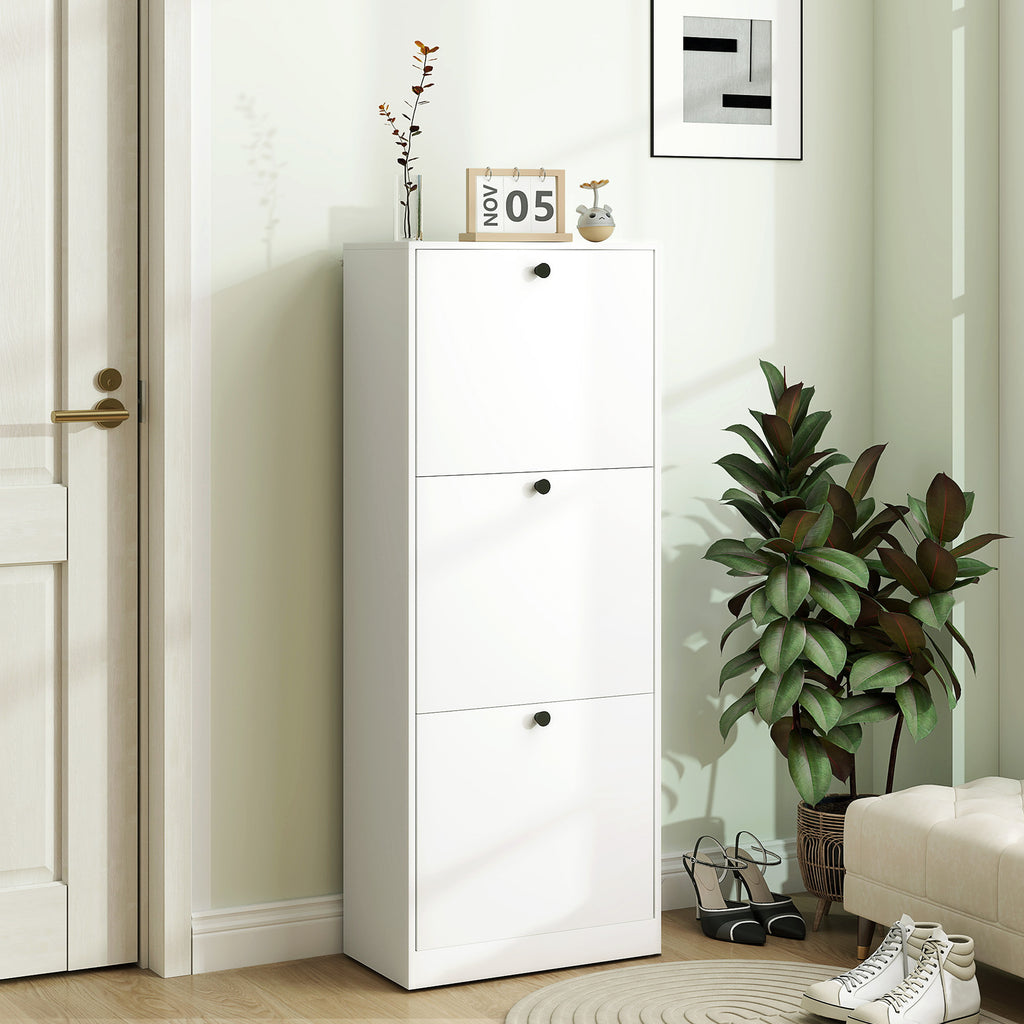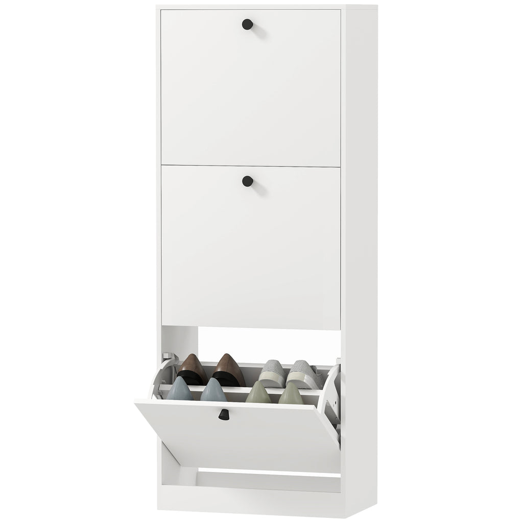HOMCOM Schuhschrank, 3 Schubladen, für bis zu 12 Paar Schuhe, Spanplatte, Weiß