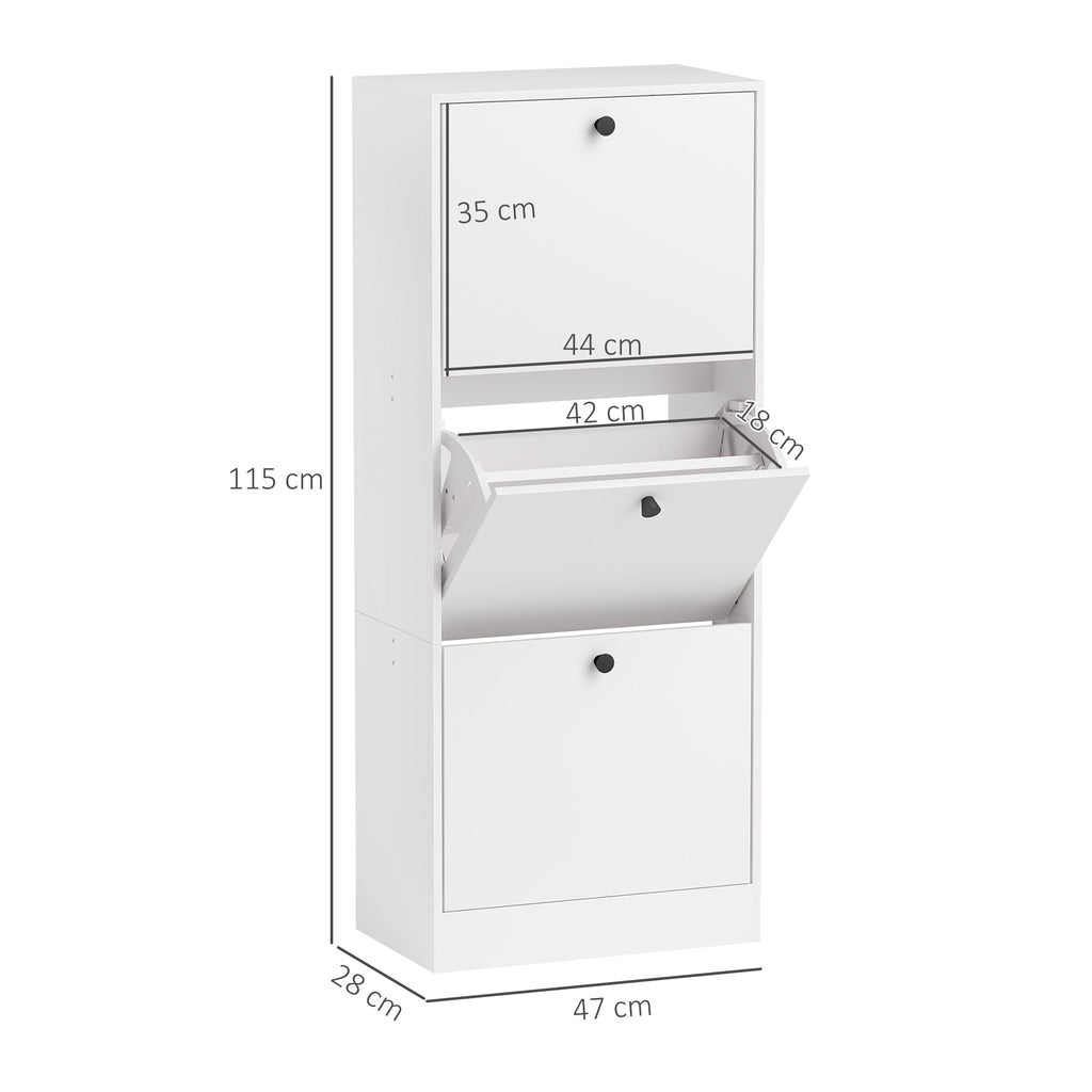 HOMCOM Schuhschrank, Schuhregal, 3 Klappfächer, verstellbar, Spanplatte, Weiß