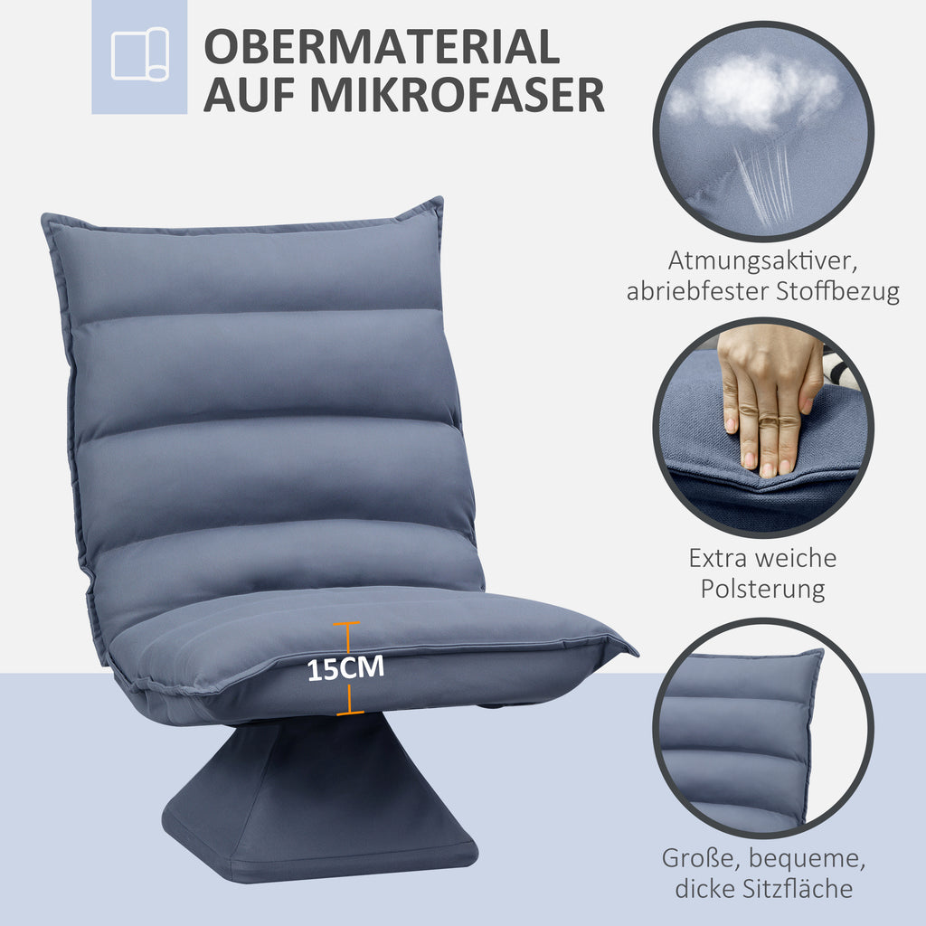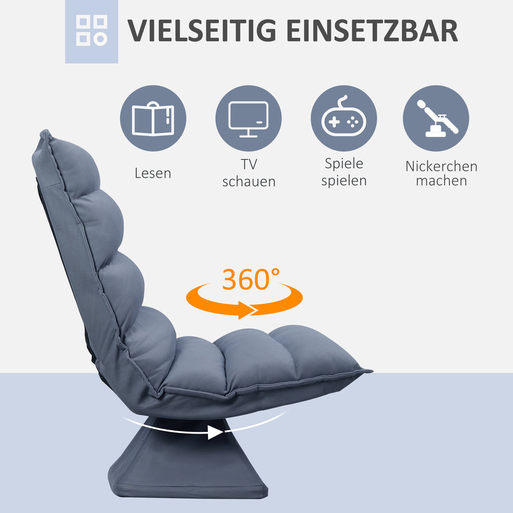 Dieses wunderbare Bodensitzkissen von HOMCOM zeigt, wie schlichte Ästhetik mit herausragender Bequemlichkeit kombiniert werden kann, um den Alltag gemütlich bei einem warmen Tee ausklingen zu lassen. Der breite Sitz und die weiche Polsterung mit atmungsaktivem Mikrofaserbezug sorgen für optimalen Sitzkomfort. Die verstellbare Rückenlehne lässt sich um bis zu 120° neigen und der Bodenstuhl kann um 360° gedreht werden, sodass Sie im Handumdrehen die perfekte Sitzposition finden.