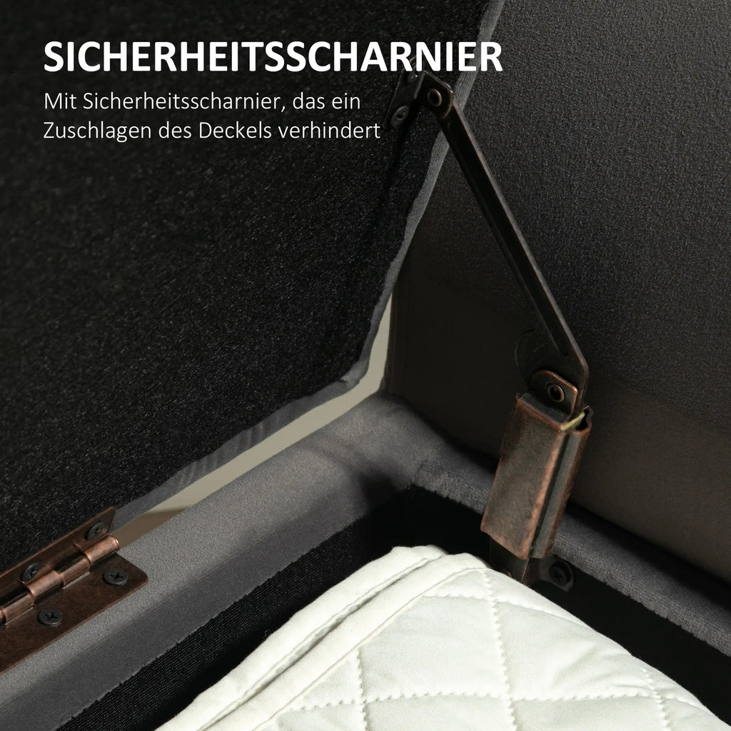 Bringen Sie mit der eleganten HOMCOM Sitzbank frischen Chic in Ihr Zuhause. Ihr atmungsaktiver Stoff und die spitz zulaufenden Beine sind ein echter Hingucker in jedem Raum. Der geräumige Stauraum hilft, Ordnung zu halten und bietet zusätzliche Sitzmöglichkeiten – perfekt für den Eingang oder das Fenster. Wählen Sie Funktionalität und Stil für ein harmonisches Wohngefühl.
