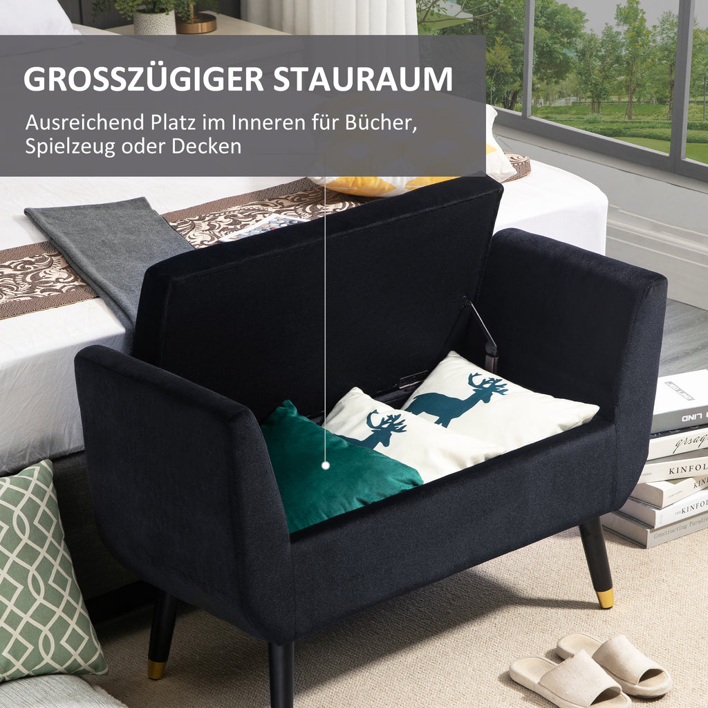 Mit dieser Sitzbank von HOMCOM wird auch eine einfache Sitzgelegenheit zum Blickfang. Die ansprechenden, mit Knöpfen versehenen Details und die goldfarbenen, spitz zulaufenden Beine geben dem Möbelstück einen glamourösen Vintage-Look. Mit reichlich Stauraum im Inneren ist diese Sitzbank eine elegante und zugleich praktische Wahl für eine zusätzliche Sitzgelegenheit im Eingangsbereich, im Wohnzimmer oder im Schlafzimmer.
