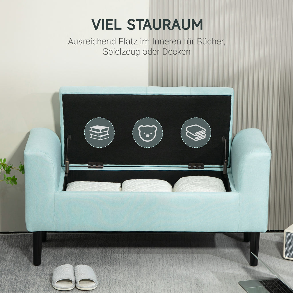 HOMCOM Sitzbank, Polsterbank mit Stauraum, leinenartiges Polyester, Kautschukholz, 100 x 40 x 44 cm, Grün