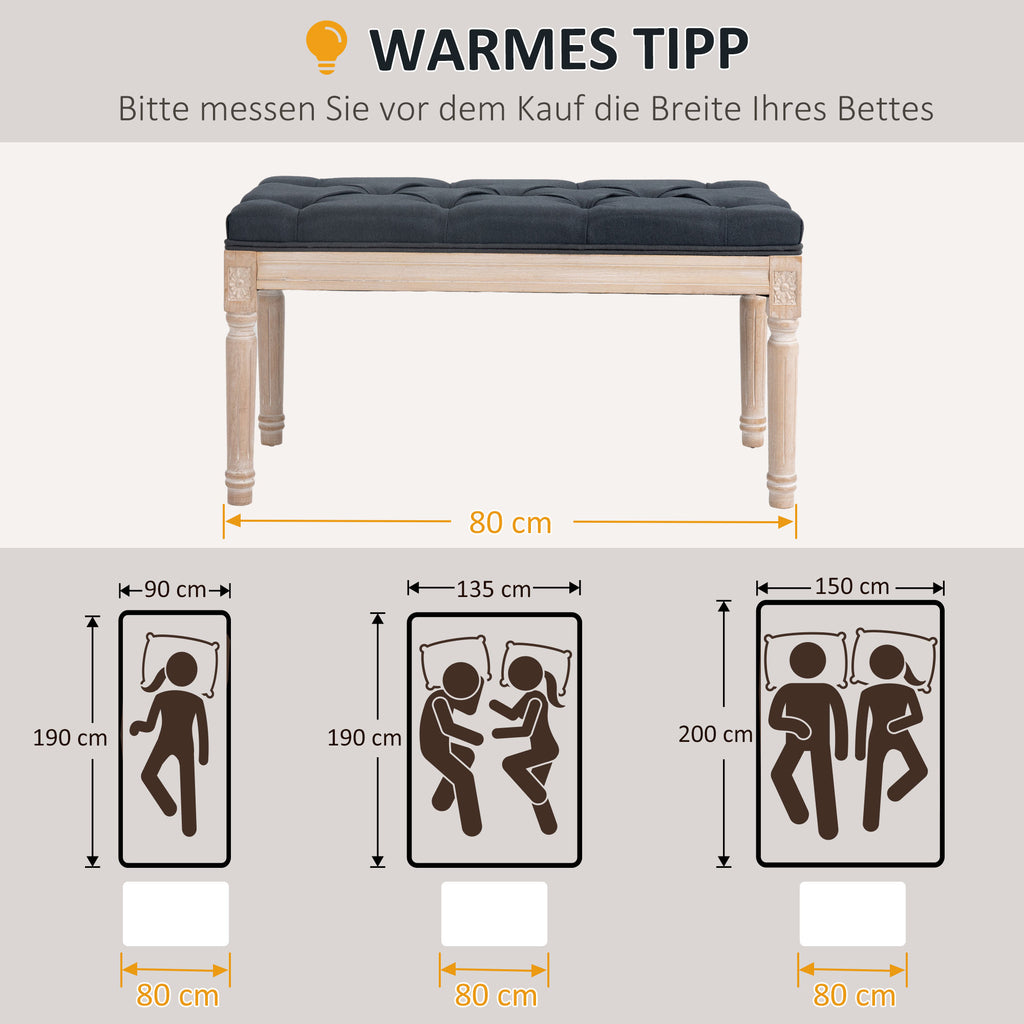 Auf der Suche nach einer eleganten und praktischen Bank? HOMCOM hat sie mit dieser Bank im Vintage-Stil für Sie gefunden. Sie kann als Sitzbank, Bettbank oder Flurbank verwendet werden und passt perfekt ins Wohnzimmer, Esszimmer, Schlafzimmer oder in den Flur. Die Bank ist mit einem atmungsaktiven Stoff in Leinenoptik bezogen und verfügt über eine dicke Polsterung für ein angenehmes Sitzgefühl. Machen Sie Ihr Zuhause mit HOMCOM gemütlich.