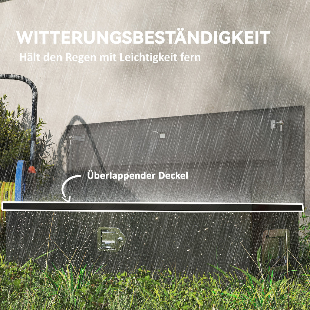 Suchen Sie eine praktische Aufbewahrungslösung für unterwegs? Die robuste HOMCOM Transportkiste bietet dank Aluminium-Konstruktion und Wetterbeständigkeit optimalen Schutz für Ihre Gegenstände. Mit abschließbarem, großzügigem Design passt sie zu vielen Anhängertypen und ist unverzichtbar, um Ihre Ausrüstung sicher und organisiert zu verstauen.