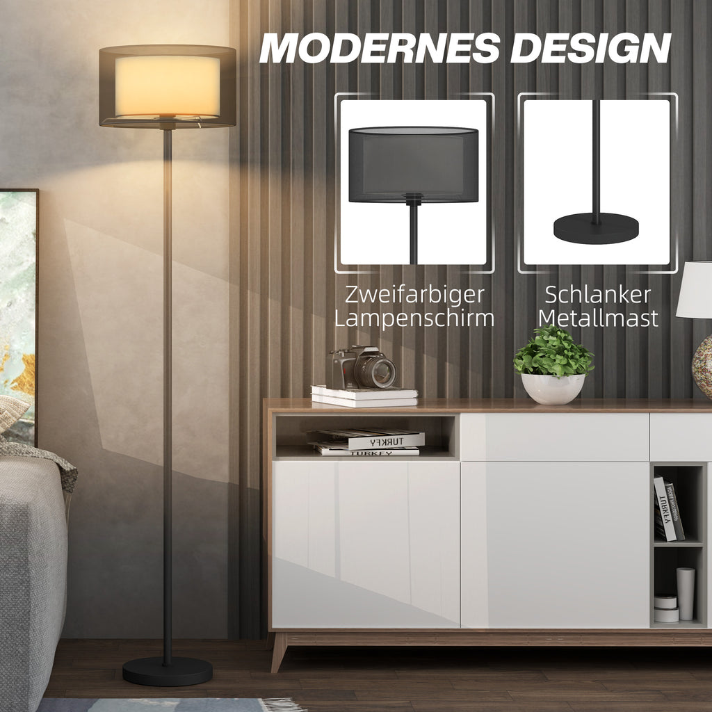 HOMCOM Stehlampe, zweifarbiger Lampenschirm, Fußschalter, Metall, Schwarz