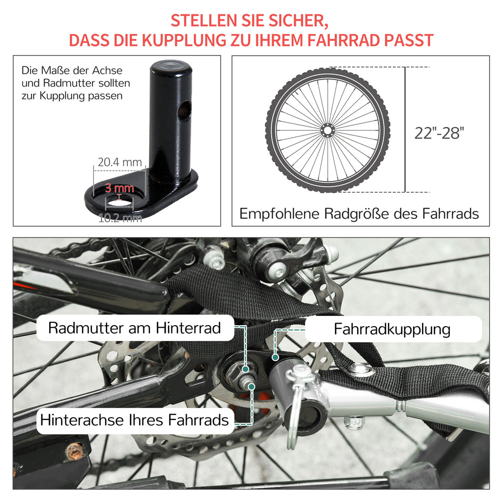 - Der Anhänger ist geeignet für 22" bis 28" Fahrräder
