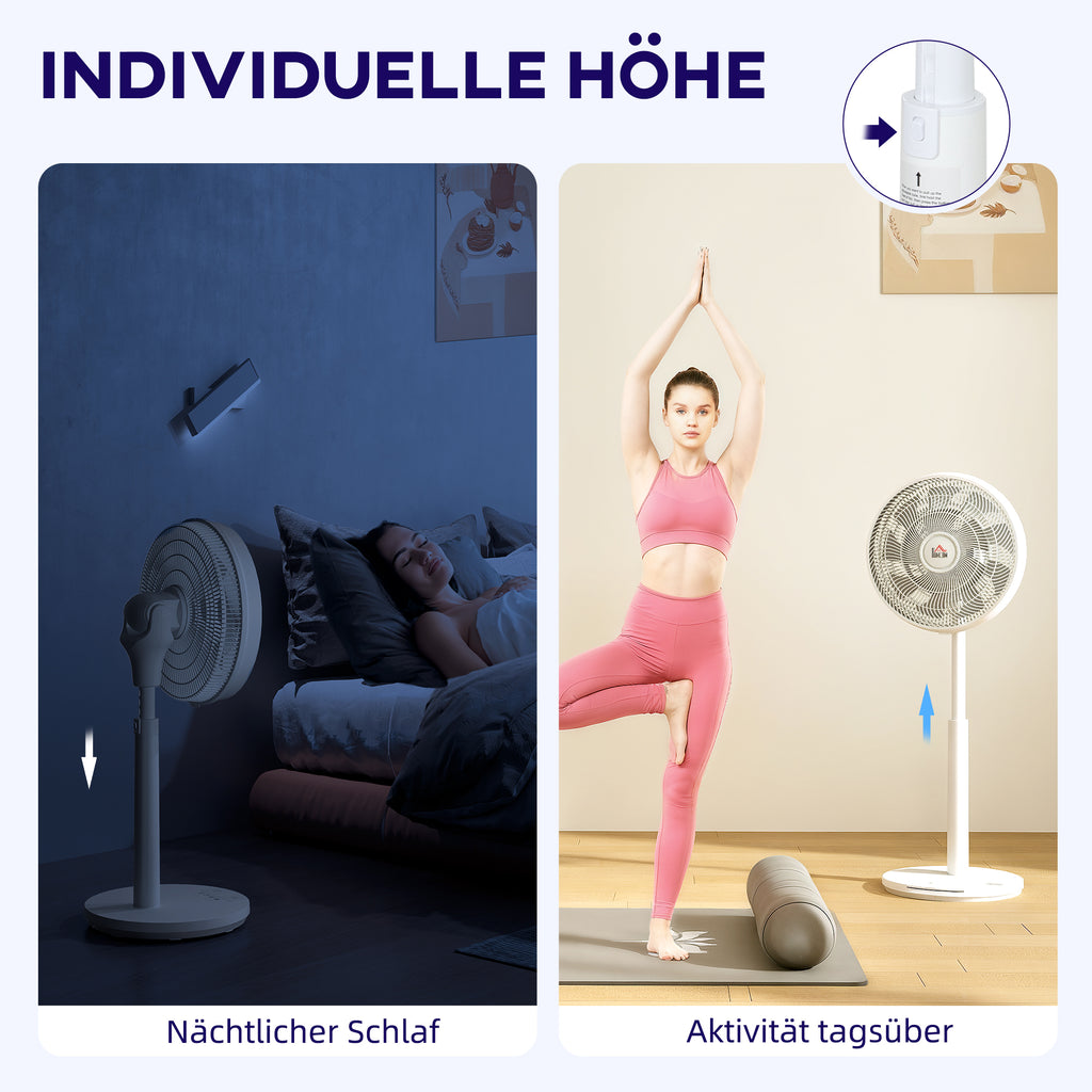 - Der Gleichstrommotor des Standventilators garantiert einen leisen und starken Luftstrom, dabei ist er energiesparend und langlebig