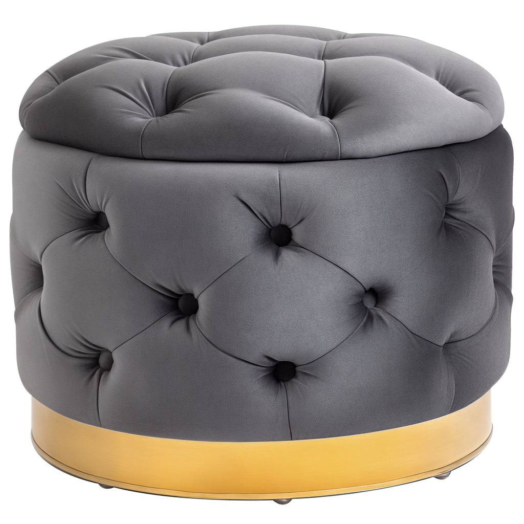 HOMCOM Vintage Hocker, Sitzhocker Truhenbank Fußbank Fußhocker mit Stauraum, Polsterhocker, Metall, Schaumstoff, Kohlegrau, 55 x 55 x 42 cm