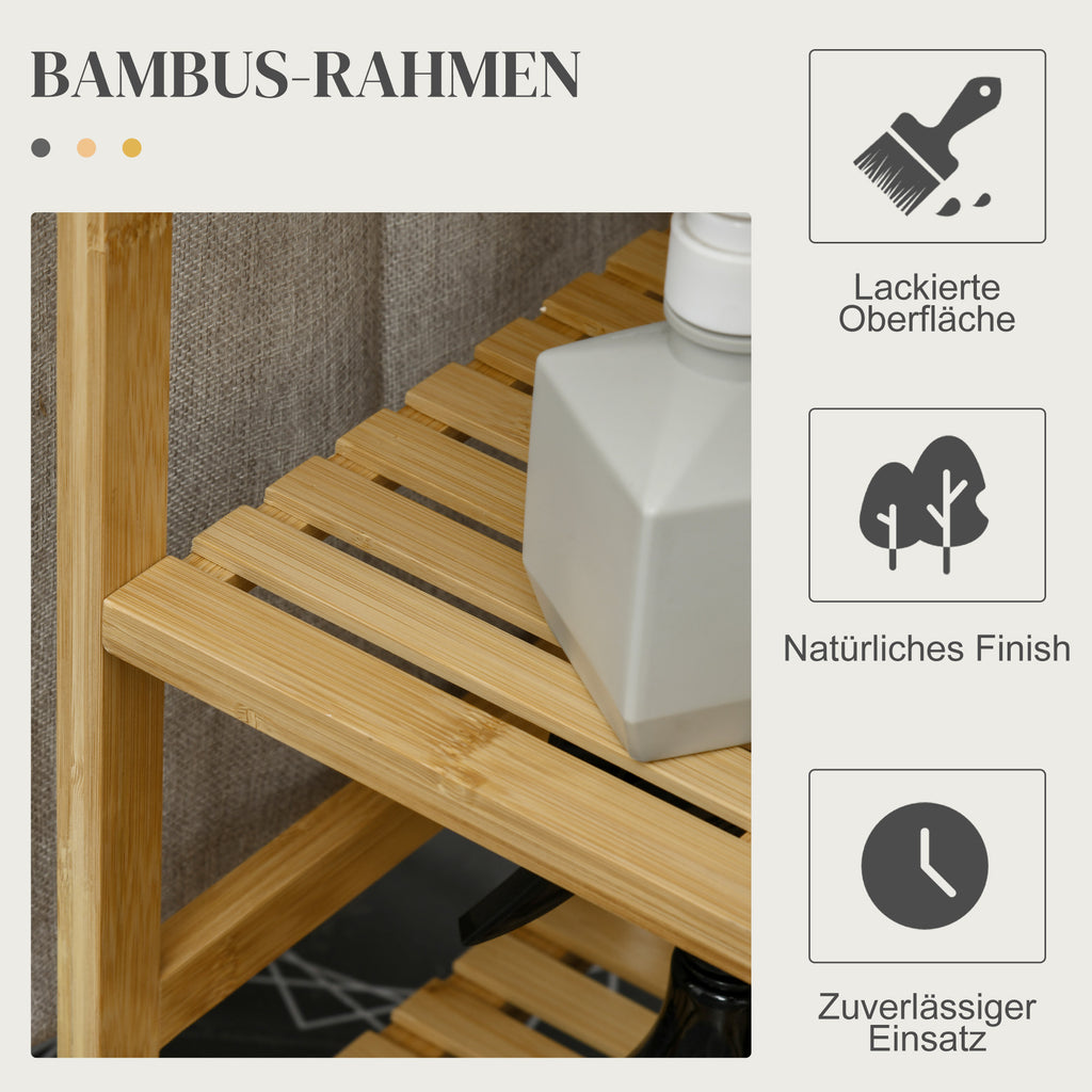 Verwandeln Sie Ihre Wäschetage in reinstes Vergnügen mit dem HOMCOM Bambus-Wäschesammler. Mit einem großzügigen 57,4-Liter-Stoffkorb nimmt dieser Wäschesammler Ihre Wäsche mit Leichtigkeit auf. Das dreistufige Regal bietet Ihnen zusätzlichen Stauraum für all Ihre Toilettenartikel, während die praktische obere Ablage mit integriertem Bügelgestell das Bügeln zum Kinderspiel macht. Hergestellt aus elegantem, lackiertem Bambus, ist dieser Wäschesortierer ein stilvolles Highlight.