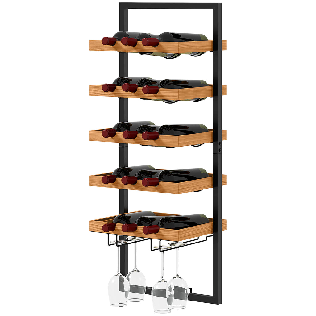 Mit dem HOMCOM Wand-Weinregal lagern Sie Ihren Wein wie ein Profi. Das elegante Design des Weinflaschenhalters mit 5 Etagen und Gläserhalter fasst 15 Flaschen und 4 Gläser, spart Platz und sorgt dafür, dass Ihr Wein stets griffbereit ist. Die vertikale Lagerung des Flaschenständers bewahrt die Korkenfeuchtigkeit und verlängert die Haltbarkeit des Weins. Ein Muss für jeden Weinliebhaber!