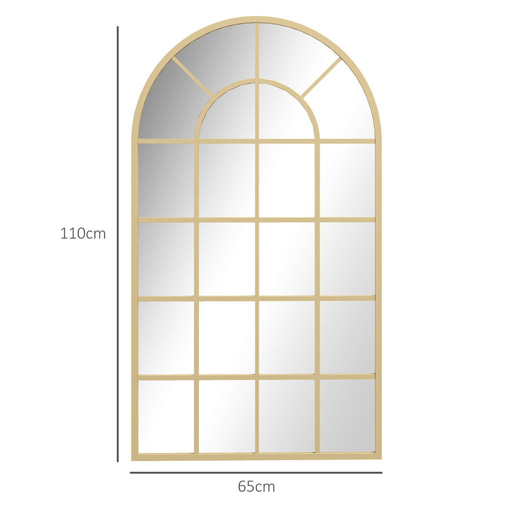 HOMCOM Wandspiegel, Fenster-Design, Flurspiegel, Metallrahmen, 110 x 65 cm, Gold