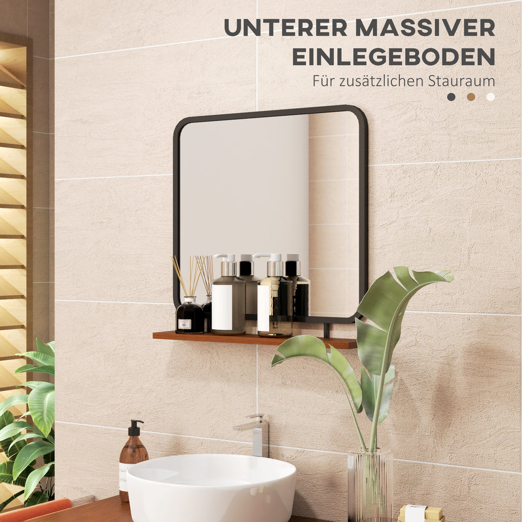 HOMCOM Wandspiegel mit Ablage, Vintage-Design, Metallrahmen, Paulownia-Holz, 55 x 55,5 cm, Schwarz/Holz