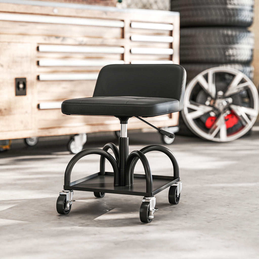 Optimieren Sie Ihr Arbeitsumfeld mit dem HOMCOM Werkstatthocker! Lange in der Garage oder Werkstatt? Dieser ergonomische Arbeitshocker bietet Komfort und Unterstützung. Er erlaubt ein bequemes Sitzen statt unbequemes Hocken. Mit einer Tragfähigkeit von 135 kg ist er für die meisten Erwachsenen geeignet. Die höhenverstellbare Funktion und 360° drehbaren Rollen ermöglichen eine reibungslose Bewegung auf allen Bodenarten und garantieren Stabilität sowie Komfort bei jeder Tätigkeit in Ihrer Garage!