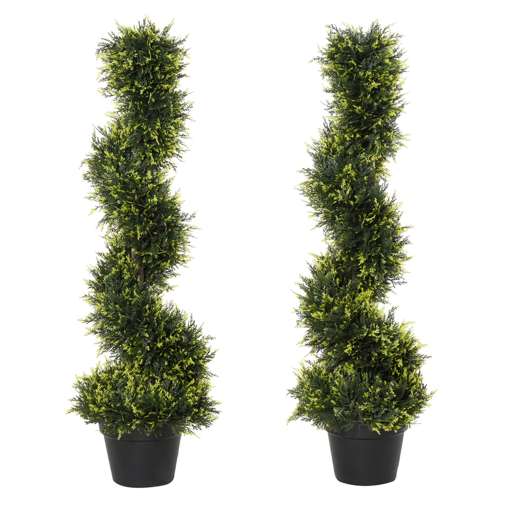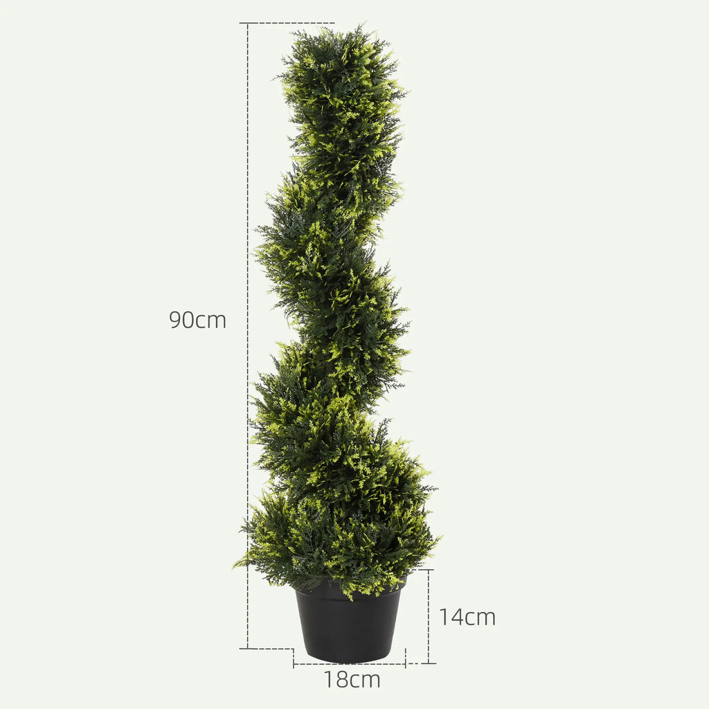 Outsunny Künstliche Spiralpflanze, Spiral-Zedernbaum mit Topf, 90 cm, künstliche Zeder für Außen- und Innendekoration, Grün