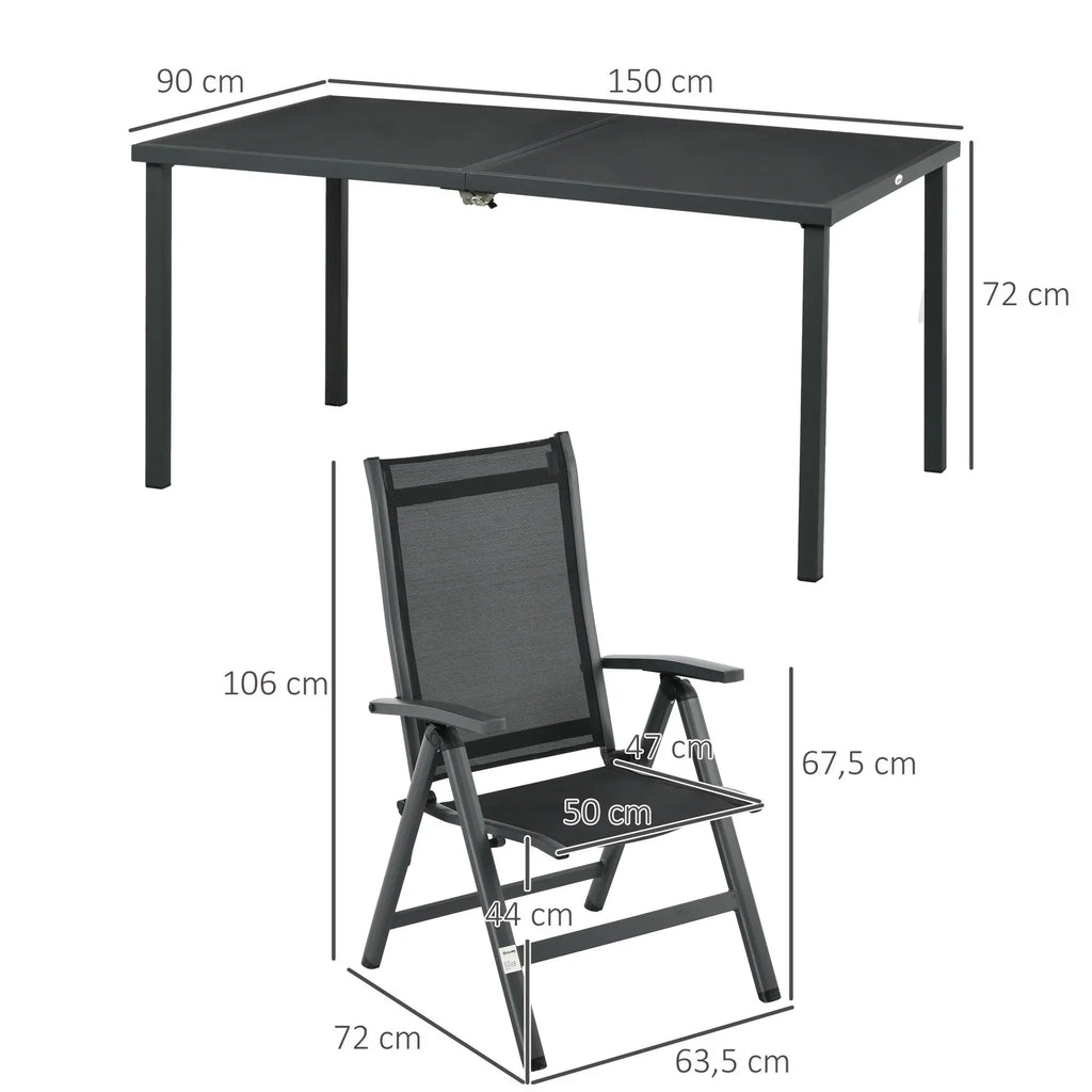 Verbringen Sie eine Auszeit an der frischen Luft mit Stil und Komfort dank unserer 5-teiligen Outsunny Gartengarnitur. Das moderne Design verleiht Ihrer Terrasse eine harmonische und stillvolle Erscheinung. Der leichte, robuste Aluminiumrahmen sorgt für hohe Stabilität, während die 5-stufig verstellbaren Rückenlehnen der Stühle eine individuelle Anpassung der Sitzposition ermöglichen. Entdecken Sie jetzt diese moderne Sitzgruppe und genießen entspannte Stunden im Freien mit Familie und Freunden.