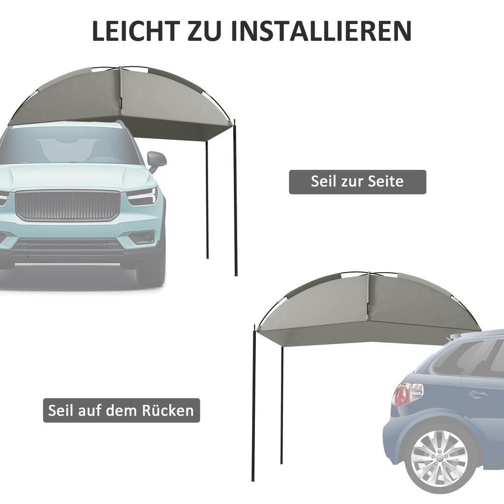 Dieses Sonnensegel von Outsunny hat ein gewölbtes Rahmendesign und bietet viel Platz zum Kochen, Stehen und Sitzen. Es lässt sich leicht an verschiedenen Fahrzeugen wie Autos, SUVs, Wohnmobilen, Lieferwagen und Lastwagen befestigen. Das Zelt ist mit einem verstellbaren Gestänge ausgestattet, das für Flexibilität sorgt. Sie können die Höhe des äußeren Endes einstellen, um mehr Privatsphäre zu haben.