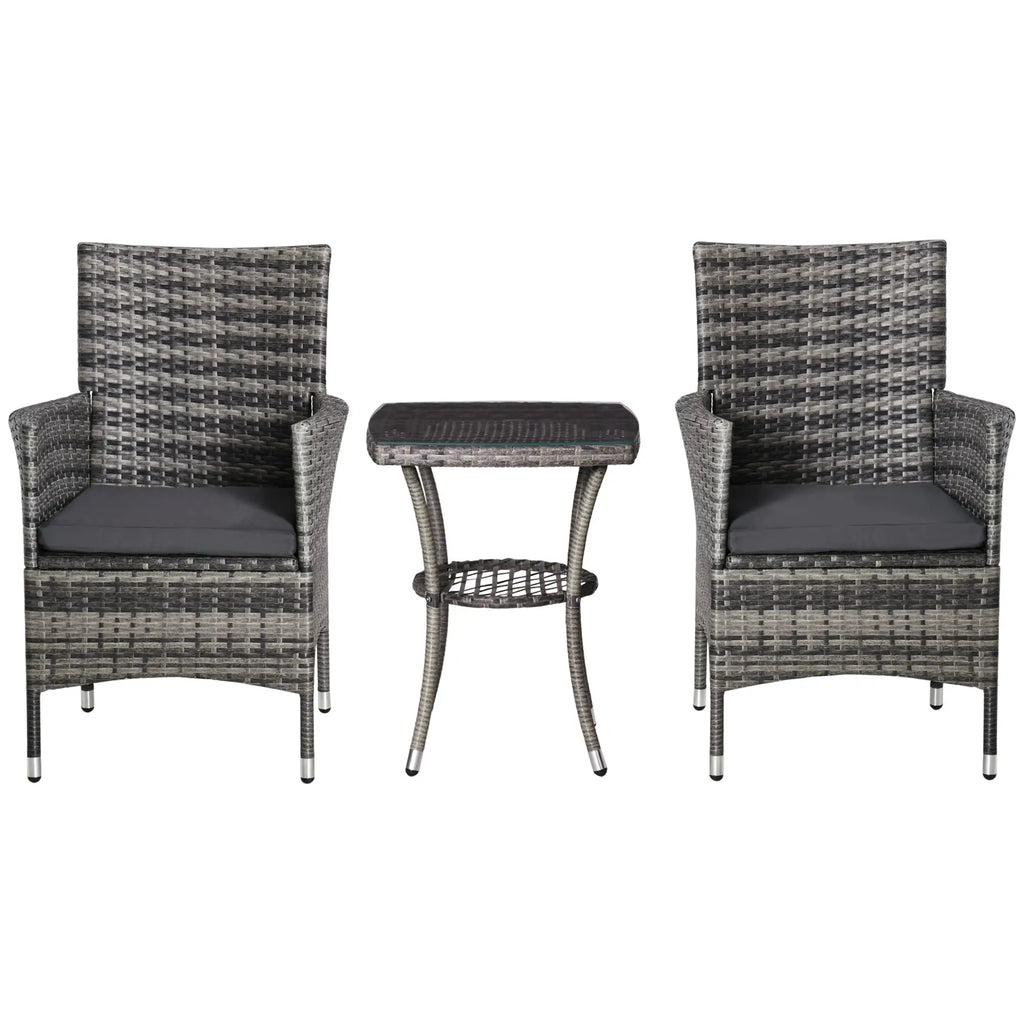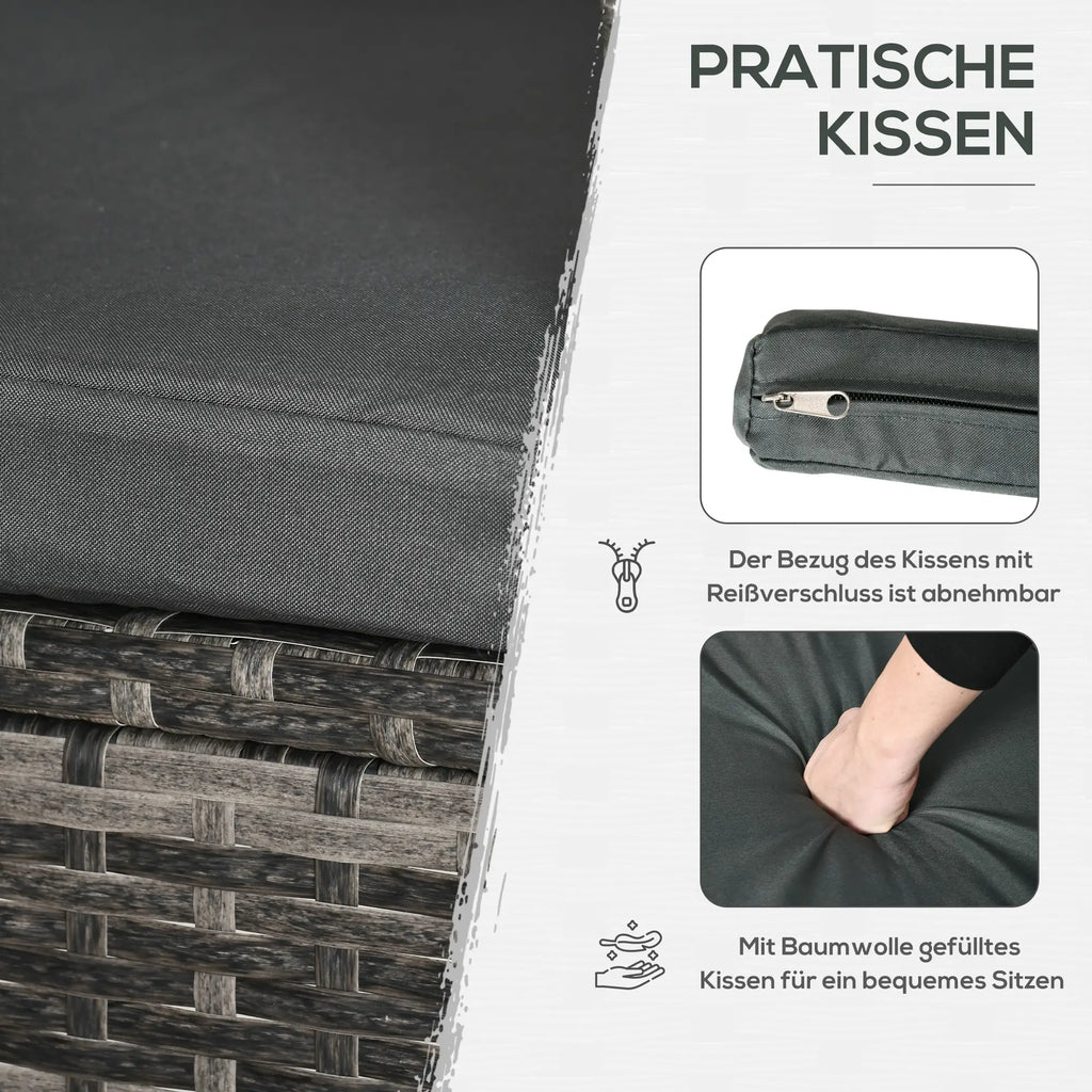Outsunny Balkonmöbel Set für 2 Personen Sitzgruppe Rattan Gartenset Polyrattan Dunkelgrau