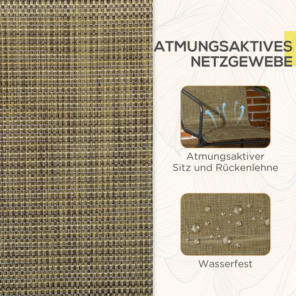Gestalten Sie Ihren Garten genauso einladend wie Ihr Wohnzimmer mit diesem Gartenstuhl-Set von Outsunny! Der leichte Metallrahmen ist extrem robust und der reißfeste, atmungsaktive Stoffbezug sieht auch nach Jahren wie neu aus. Der Stuhl besitzt eine hohe Rückenlehne und bequeme Armlehnen für optimalen Halt. Die Metallbeine verfügen über rutschfeste Füße, die für hohe Stabilität sorgen. Dekorativ und funktional – schaffen Sie eine einladende Atmosphäre in Ihrem Grün!