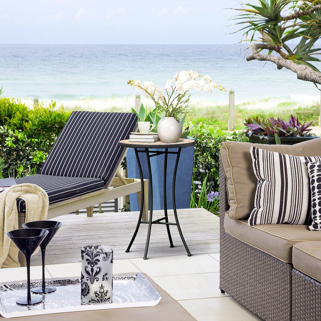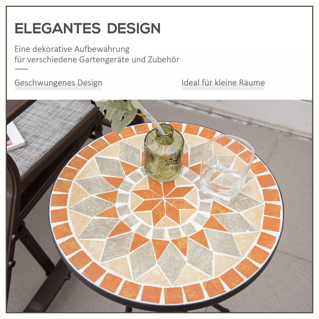Dieser dekorative Terrassentisch von Outsunny ist ideal für alle, die ein niveauvolles und zugleich praktisches Einrichtungselement für ihren Garten oder Terrasse suchen. Der Bistrotisch besteht aus einem belastbaren Metallrahmen und einer charaktervollen Mosaik-Tischplatte, die nicht nur besonders ästhetisch, sondern auch hochstabil ist. Der Tisch fügt sich in nahezu jedes Ambiente und kann daneben auch als Couchtisch, Beistelltisch oder Arbeitstisch verwendet werden.