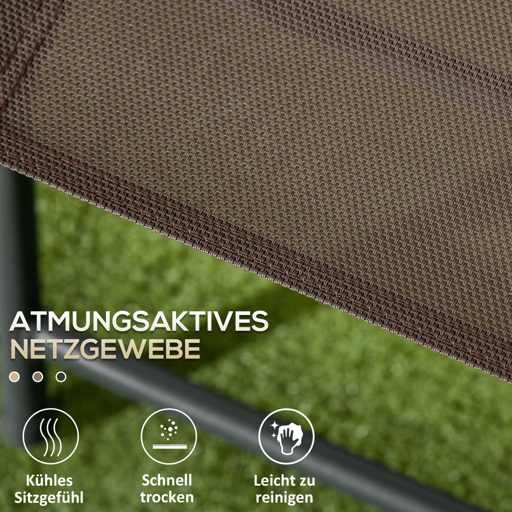 Das dreiteilige Gartenmöbel-Set von Outsunny besteht aus einem Couchtisch mit gehärteter Glasplatte und zwei Klappstühlen mit Armlehnen. Tisch und Stühle des Bistrosets bestehen aus einem Metallrahmen mit pulverbeschichteter Oberfläche, wodurch sie stabil und robust sind. Durch die klappbare Ausführung des Balkonmöbel-Sets lassen sich Tisch und Stühle leicht verstauen und transportieren. Eine ideale Möglichkeit, mit Outsunny den Tag direkt vor der eigenen Haustür zu genießen.