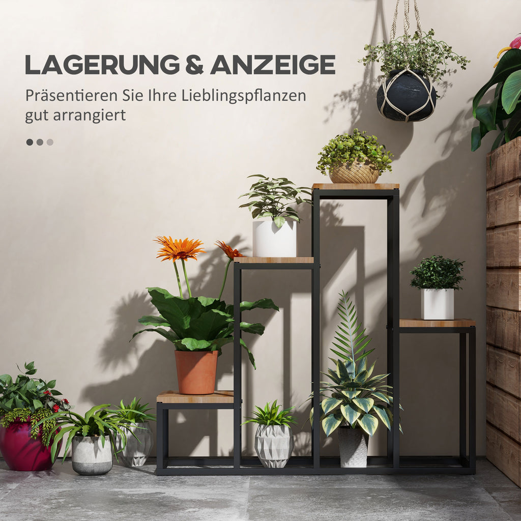 Das Outsunny Blumenregal zieht alle Blicke auf sich und verleiht jedem Raum Glanz. Mit seinen vier Regalböden bietet es stilvolle Präsentationsflächen für Pflanzen, Bücher, Fotos und viel mehr. Die stabile Konstruktion des Blumenständers aus Stahl und Holz gewährleistet eine langjährige Nutzung.