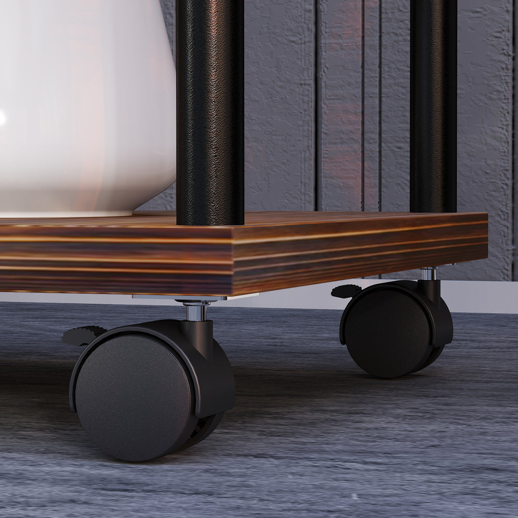 Die 5-stufige, versetzte Bauweise dieses Blumenständers von Outsunny sorgt nicht nur für optimale Sonneneinstrahlung für Ihre Pflanzen, sondern dient auch als eleganter Indoor- oder Outdoor-Dekorationsgegenstand. Ausgestattet die Pflanzentreppe mit beweglichen, arretierbaren Rädern und einer stabilen Kombination aus Stahl und Holz, wertet er jeden Raum oder Außenbereich auf.