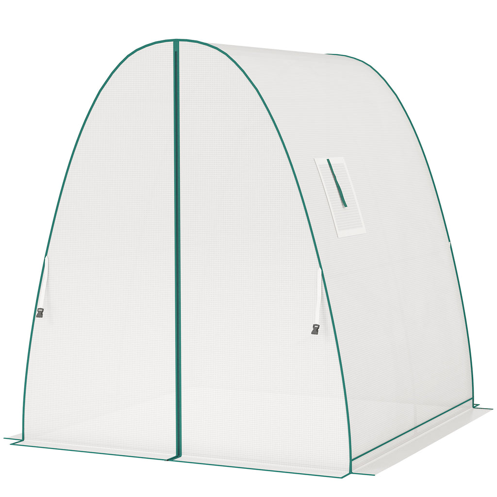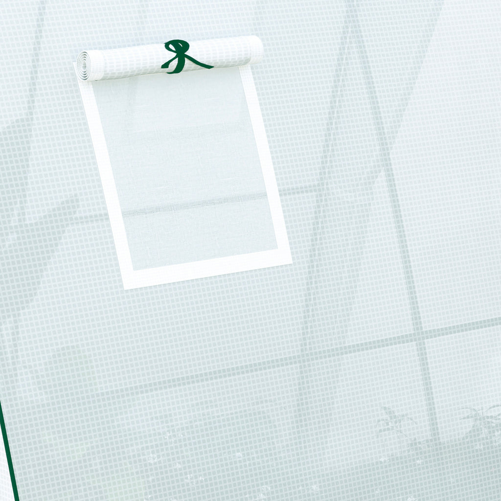 Entdecken Sie das Outsunny Foliengewächshaus mit seinem einzigartigen gotischen Bogen, der Regen und Schnee leicht abgleiten lässt und ein Einstürzen verhindert. Mit zusätzlichen Sandsäcken und festen Abspannseilen bietet es erhöhte Stabilität. Die zwei Reißverschlusstüren und seitlichen Belüftungsfenster des Tomatenhauses sorgen für optimalen Zugang und gesundes Pflanzenwachstum. Ideales Tomatenhaus für das ganzjährige Gärtnern, schützt es Ihre Pflanzen zuverlässig vor Witterungseinflüssen.