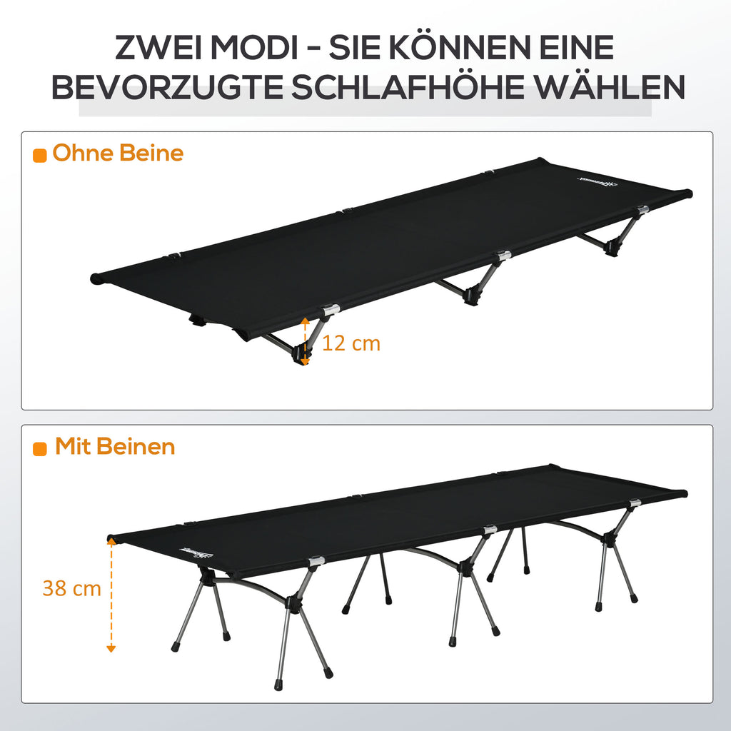 Mit diesem leicht gebauten, praktischen Campingbett von Outsunny haben Sie beim Camping und bei Übernachtungen im Freien immer einen bequemen Platz zum Ausruhen. Dieses Feldbett bietet reichlich Platz und trägt dank seines stabilen Metallrahmens bis zu 150 kg, sodass es auch großgebauten Erwachsenen einen hervorragenden Schlafplatz bietet. Besonders praktisch: Es sind zwei unterschiedliche Betthöhen einstellbar und der Lieferumfang enthält eine geräumige Tragetasche für leichten Transport.