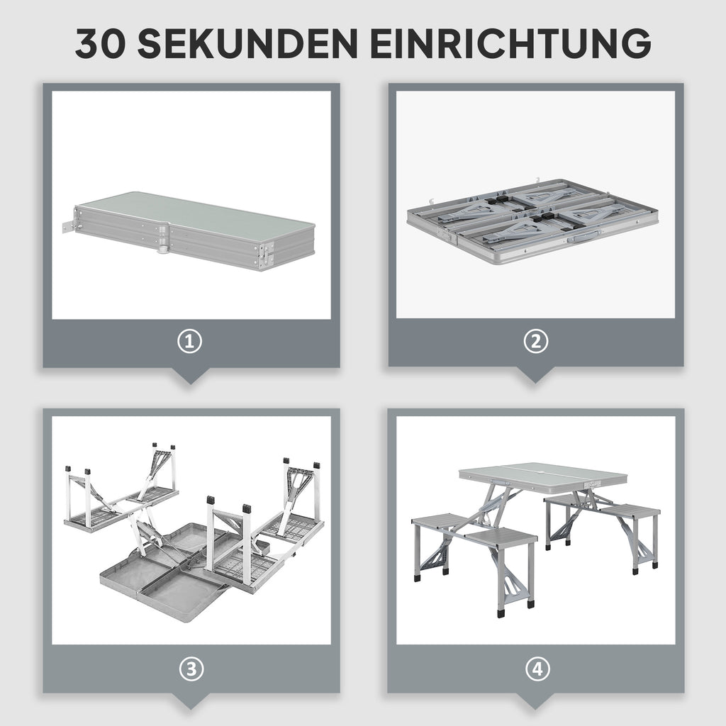 Suchen Sie nach praktischen Outdoor-Möbeln? Entdecken Sie diesen Outsunny faltbare Campingtisch mit 4 eingebauten Sitzen, der wie ein klappbarer Koffer konzipiert ist. Leicht zu tragen und perfekt für Camping, Strand und Picknicks. Aus Aluminium gefertigt, kombiniert der Campingtisch Leichtigkeit mit hoher Stabilität.