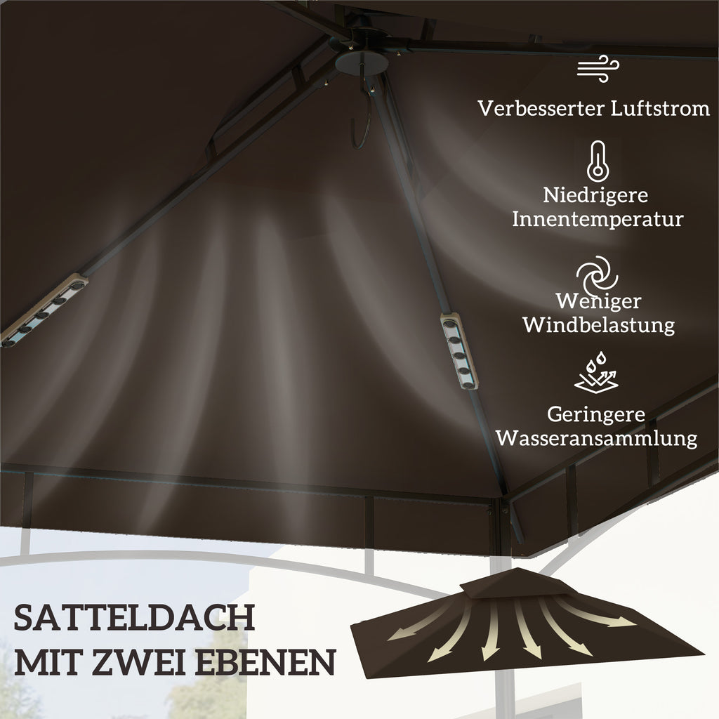 Verleihen Sie Ihrem Pavillon mit unserem Ersatzdach für Grillpavillon von Outsunny neues Leben. Aus 160gsm Polyester mit Kunstleder-Beschichtung gefertigt, schützt es vor UPF50+ und bewahrt Sie und Ihre Gäste vor Sonnenbrand. Das zweistufige Ersatzdach für Grillpavillon sorgt für hervorragende Belüftung und Stabilität bei Wind. Dank der Ziehlaschen und passgenauen Ecktaschen der Schutzabdeckung erfolgt die Anbringung schnell und ohne großen Aufwand.