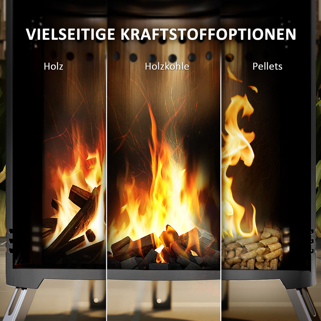 Entdecken Sie die elegante und nützliche Outsunny Feuerschale für den Garten im modernen Design. Diese aus pulverbeschichtetem Edelstahl gefertigte Feuerstelle bietet nicht nur Robustheit und hohe Hitzebeständigkeit, sondern auch ein ansprechendes Zylinderdesign. Dieses innovative, rauchfreie Sekundärverbrennungssystem der Feuerschale ermöglicht durch Sauerstoffzufuhr von unten und Kanäle zwischen den Wänden eine effiziente und starke Verbrennung, die den Brennstoff vollständig zu Asche verbrennt. Erleben Sie Wärme auf eine ganz neue Art!