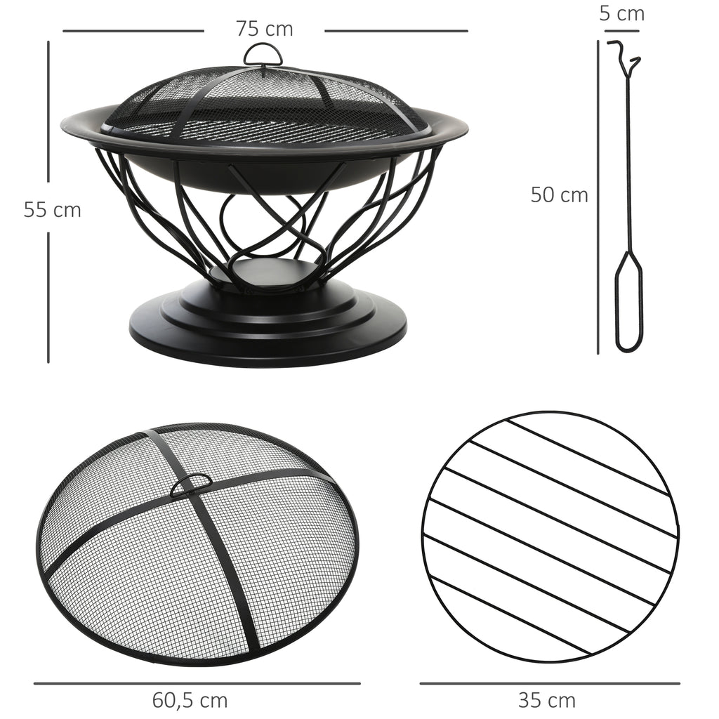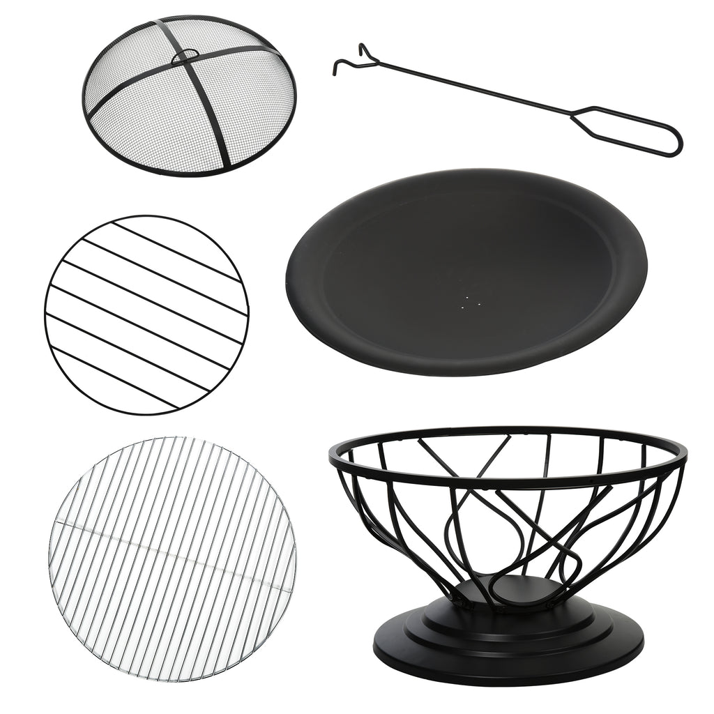 Diese elegante Feuerschale ist nicht nur ein schönes Deko-Element für ihren Garten, sondern kann auch als Grill verwendet werden. Die Schale ist bis zu zu 500°C erhitzbar. Eine Abdeckung aus Maschendraht verhindert Funkenflug und hält das Feuer unter Kontrolle. Die hochwertige Feuerschale aus Metall mit 2-in-1 Funktion verschönert jeden Garten.