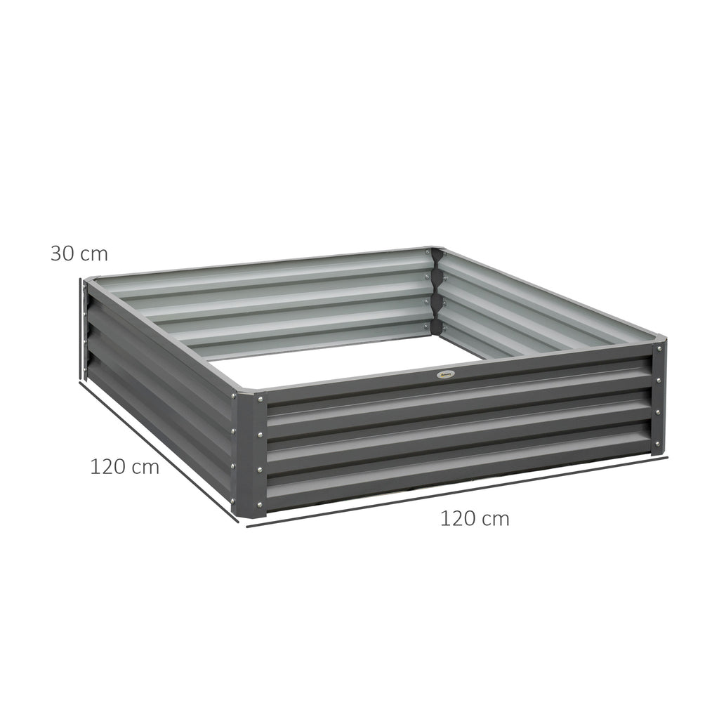 Outsunny Gartenbeet, Pflanzkasten mit Stahlgehäuse, Hellgrau, 120 x 120 x 30 cm