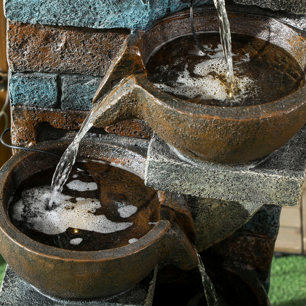 Verleihen Sie Ihrem Garten mit diesem fünfstufigen Kaskadenbrunnen eine charaktervolle, lebendige Note. Der Brunnen in Backsteinoptik fügt sich ideal in jedes Gartenambiente ein. Die mitgelieferte Pumpe gewährleistet eine autonome Wasserzirkulation, die einen stetigen Fluss von plätscherndem Wasser sicherstellt. Auch eine solarbetriebene LED-Beleuchtung ist integriert. Das sanfte Plätschern wirkt ungemein beruhigend und verwandelt Ihren Garten in eine kleine Erholungsoase.