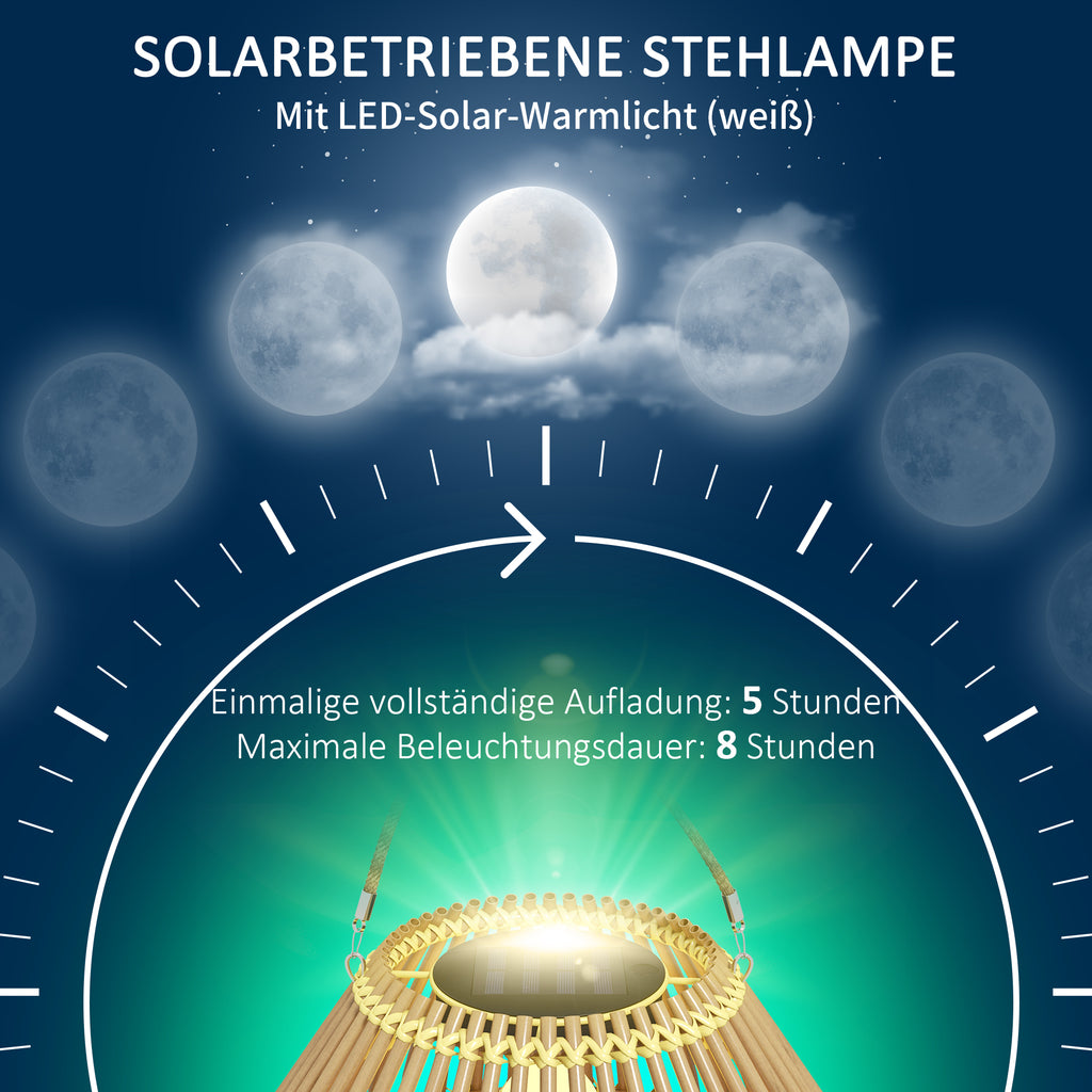 Outsunny bietet eine wasserdichte Außenlampe, um Ihre Veranda, Terrasse oder Ihren Weg zu beleuchten. Eine energiesparende Lösung, die Sie einstellen und vergessen können: Sie lädt sich in der Sonne auf und schaltet sich bei Einbruch der Dunkelheit ein. Im Lieferumfang enthalten ist ein eleganter PE-Rattanschirm, der für unterhaltsame Schattenmuster sorgt. Für den abendlichen Spaziergang im Garten oder für den Platz im Freien. Erhellen Sie die Nacht mit Outsunny.