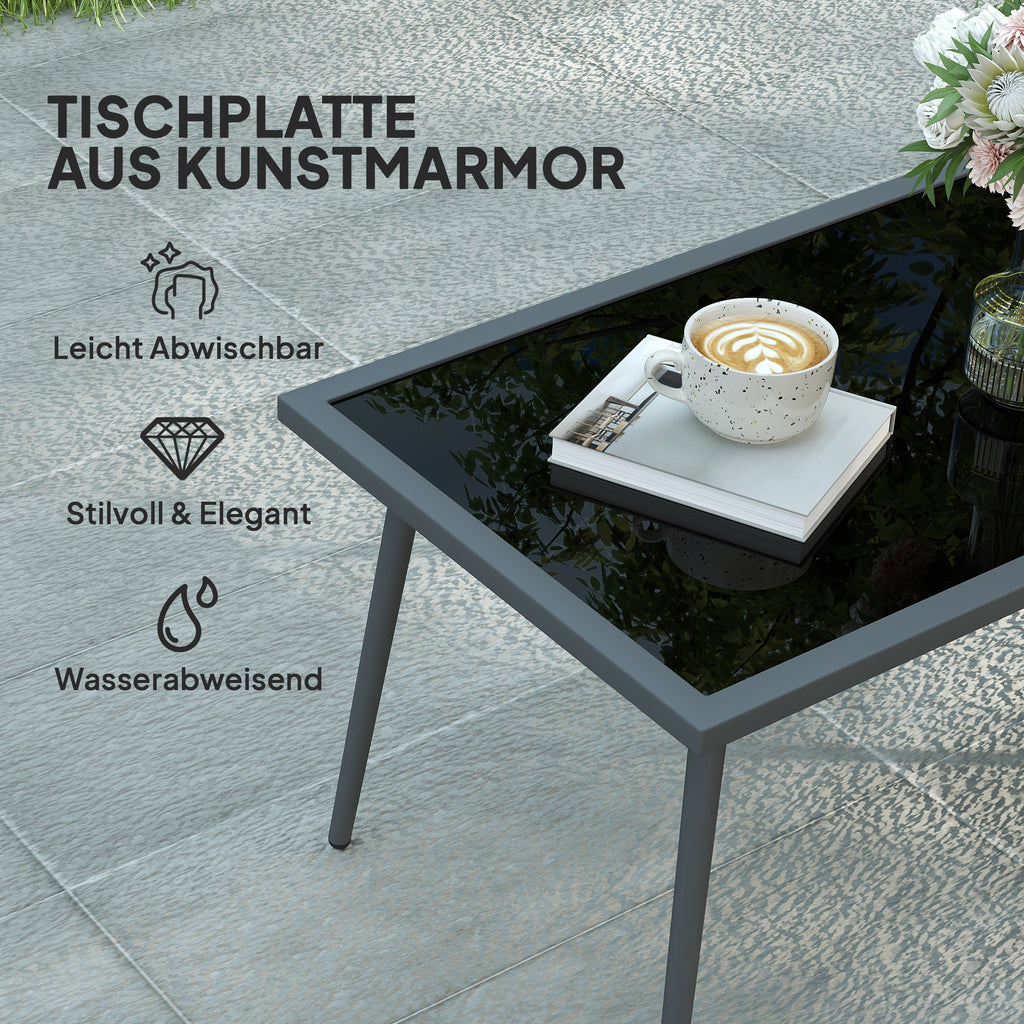 - Pulverbeschichteter Stahlrahmen der Balkonsitzgruppe ist korrosionsbeständig