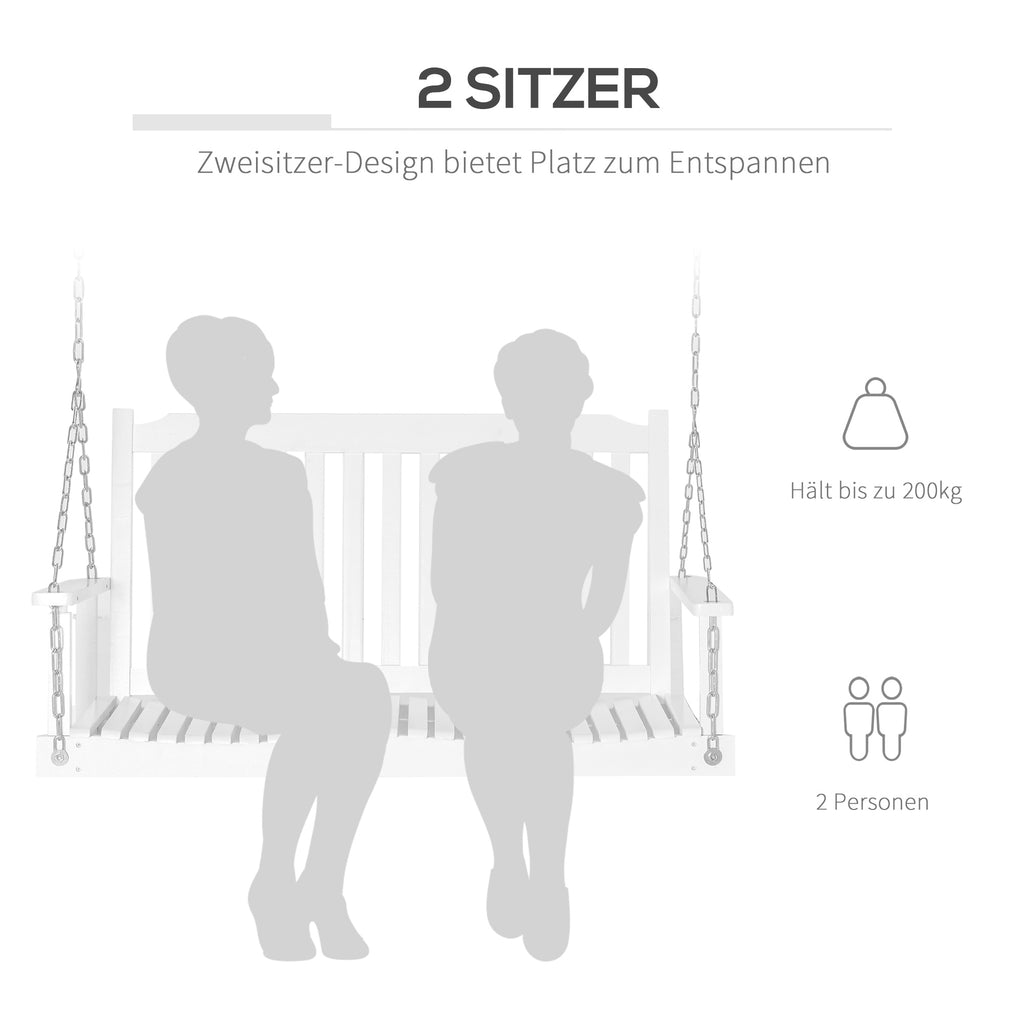Outsunny Gartenschaukel für 2 Personen Schaukelbank Hängebank Massivholz Patio Terrasse Hinterhof Weiß 117 x 69 x 60 cm