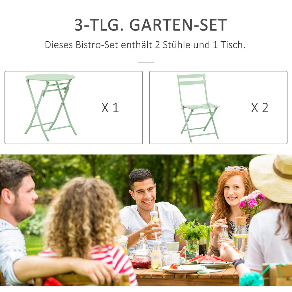 Das Outsunny Bistrotischset bringt Ihrer Wohnung ein schönes Upgrade. Diese faltbare Option bietet nicht nur kompakten Komfort, sondern auch einen atemberaubenden geflochtenen Look, der jede bestehende Dekoration sofort aufwertet. Er besteht aus einer pulverbeschichteten Metallrahmenstruktur für Kratz- und Rostbeständigkeit. Runder Tisch ermöglicht eine einfache Reinigung mit einem feuchten Tuch. Lassen Sie dieses Bistro-Set bringt Ihnen eine glückliche Freizeit, genießen Sie Ihr Gartenleben.