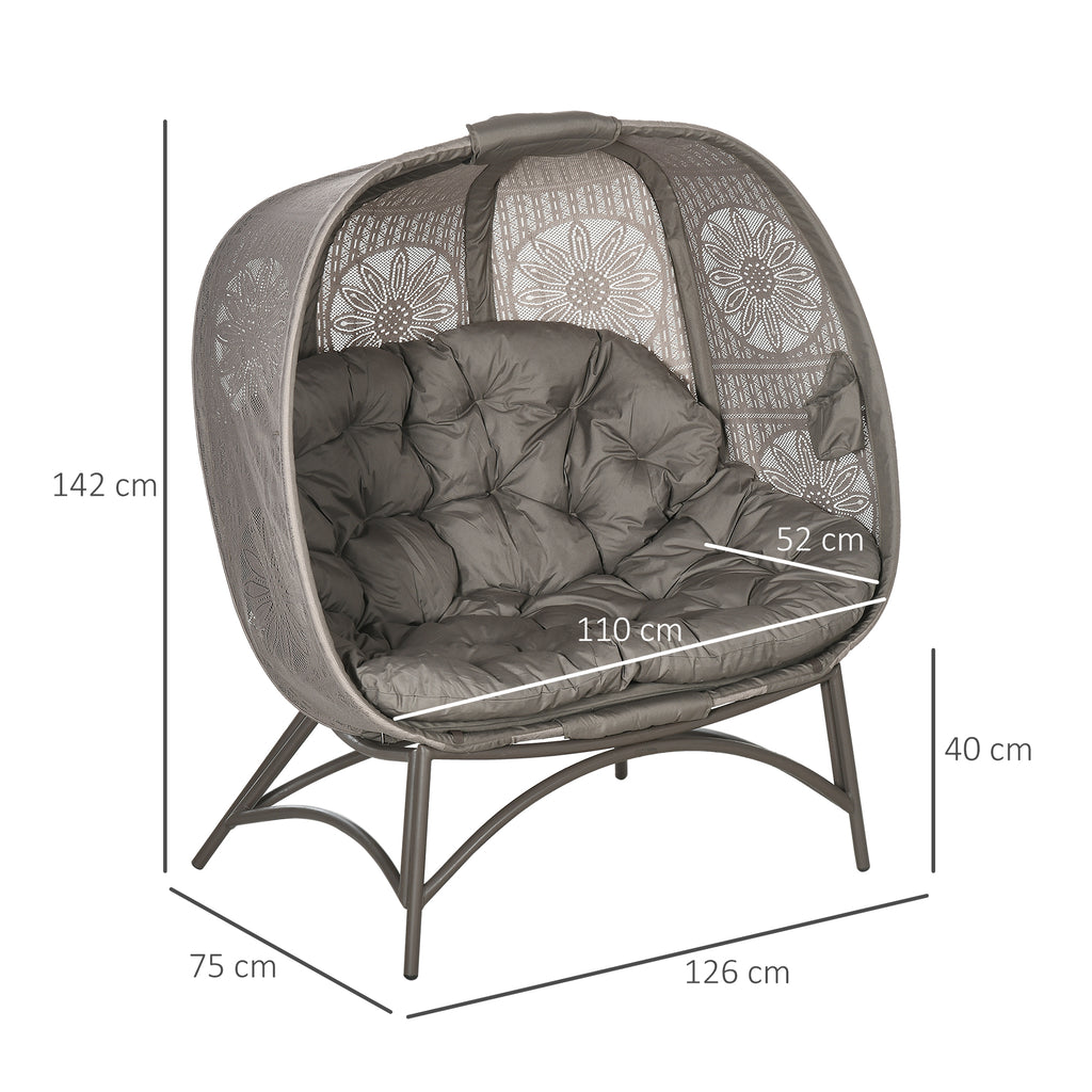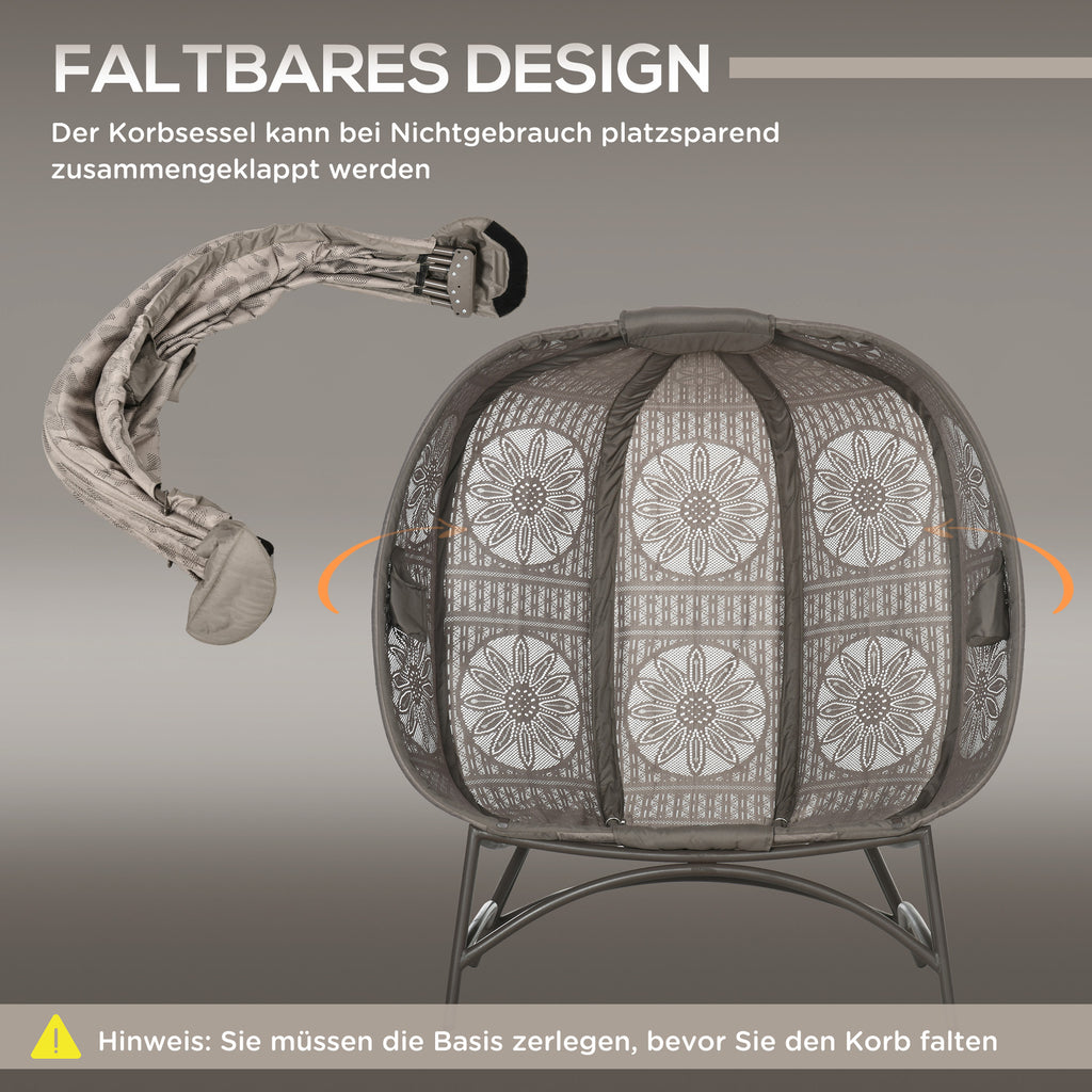 Genießen Sie zu zweit die frische Gartenluft auf diesem großen Gartenstuhl von Outsunny. Er bietet Platz für bis zu zwei Personen und besticht durch ein feines Blumenmuster auf dem Stoffbezug. Unglaublichen Komfort bietet das große, weiche Sitzkissen, das den gesamten Sitzkorb ausfüllt. Dank des praktischen Klappdesigns lässt sich der Sessel bei Bedarf zusammenklappen und platzsparend verstauen. Zudem bietet der starke Stahlrahmen eine kompromisslose Stabilität und sichere Balance.