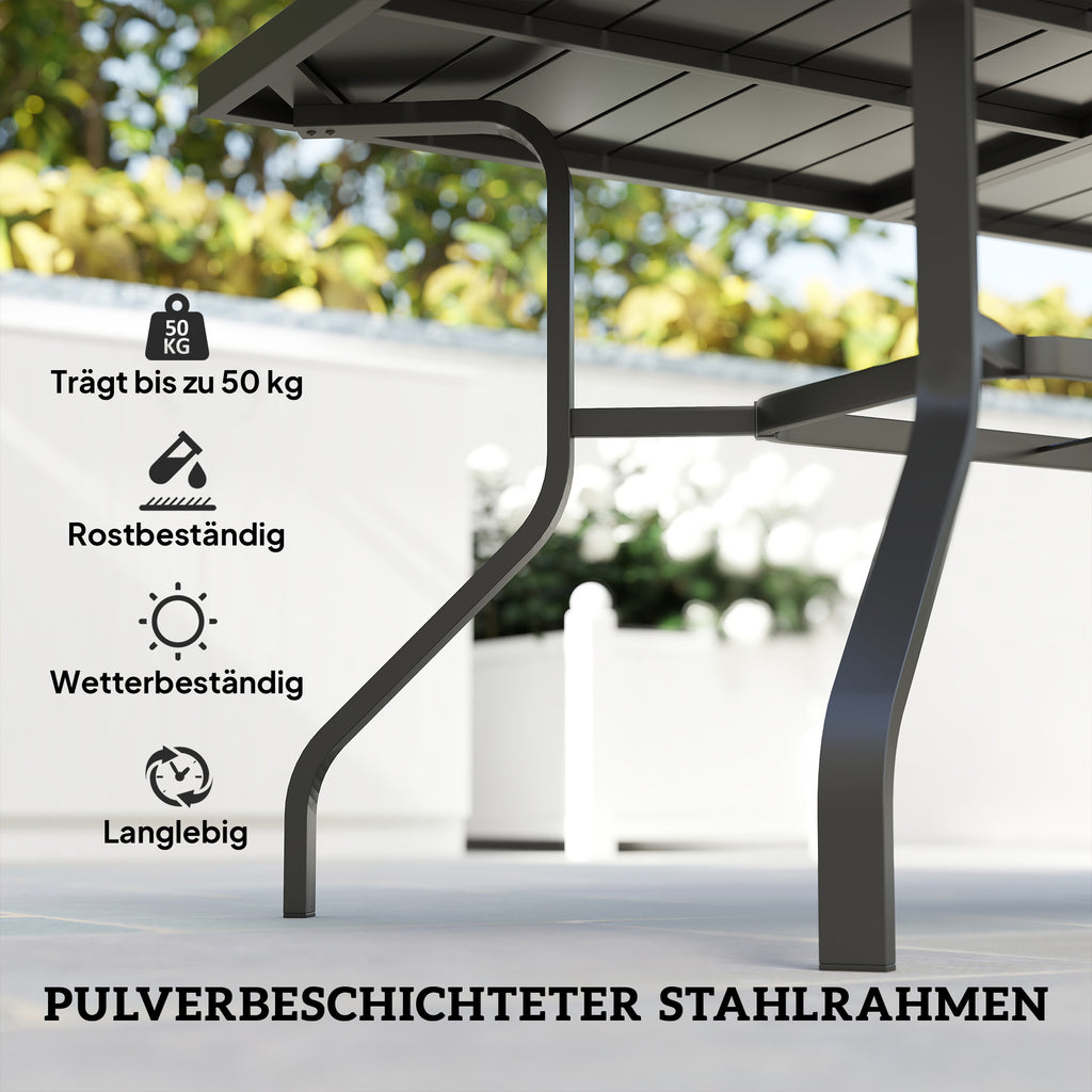 • Robuster Metall- und pulverbeschichteter Stahlrahmen des Gartentisches trägt 50 kg