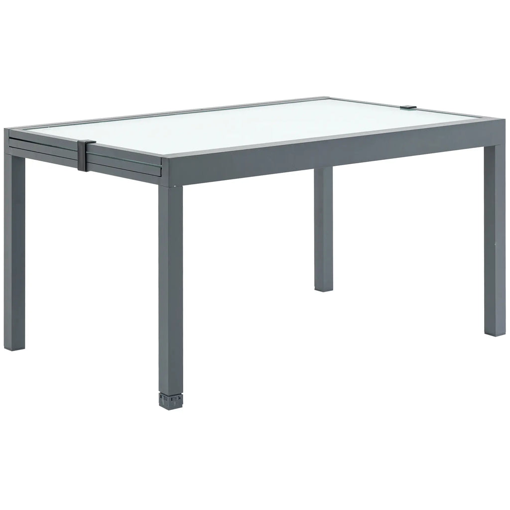 Ganz gleich, ob Sie eine gesellige Gartenparty feiern oder ein erholsames Abendessen mit Ihrer Familie planen - dieser moderne Esstisch von Outsunny wird sich ideal in Ihre Außeneinrichtung fügen und genug Platz für alle Freunde und Familienmitglieder bieten. Die Kombination aus robustem Aluminiumrahmen und der ausziehbaren Tischplatte aus gehärtetem Glas überzeugt durch eine hohe Stabilität und eine besonders einfache Reinigung. Beeindrucken Sie Ihre Gäste mit diesem großartigen Balkontisch!