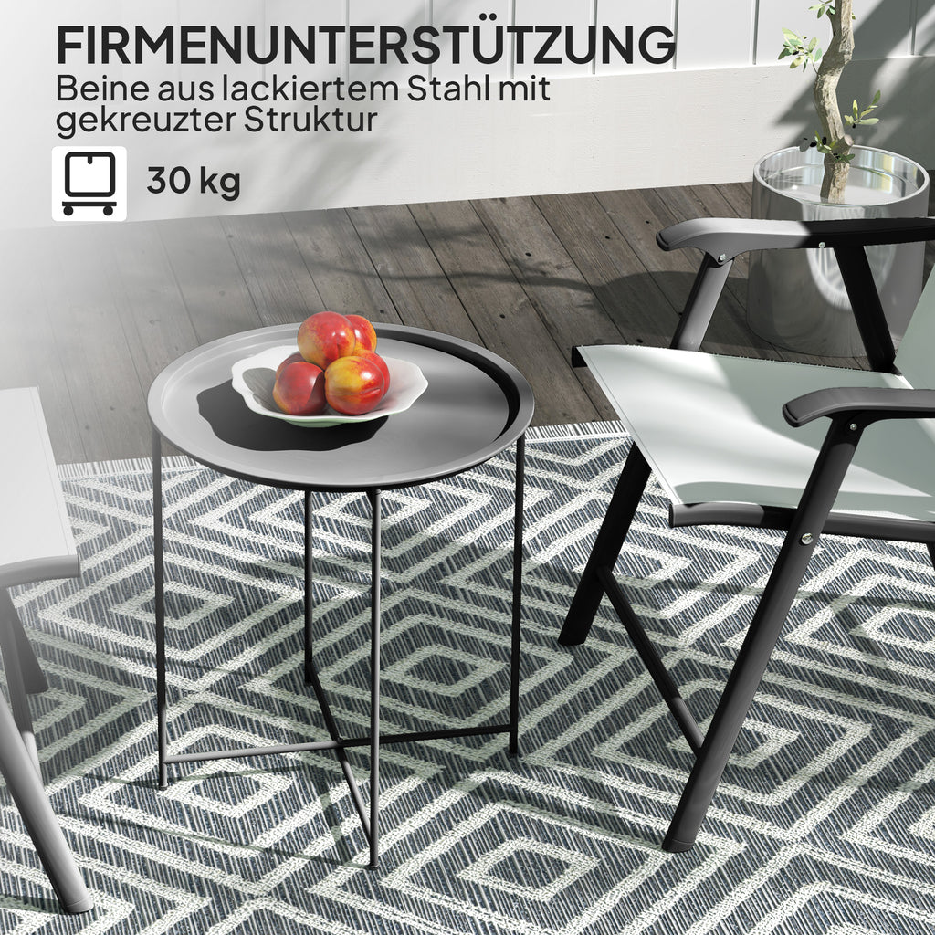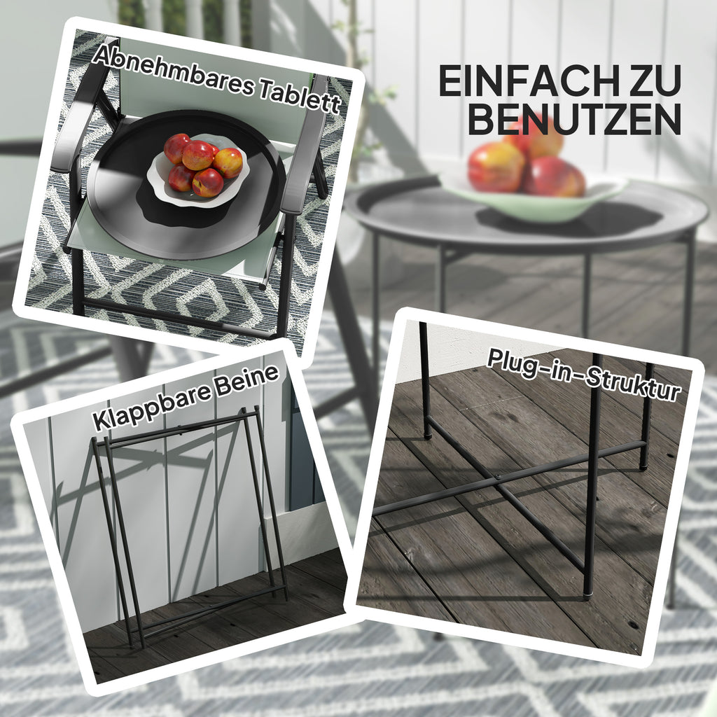 Outsunny Gartentisch, Runder Außen-Beistelltisch aus Stahl mit herausnehmbarem Tablett, faltbares Design, Terrassentisch, Schwarz