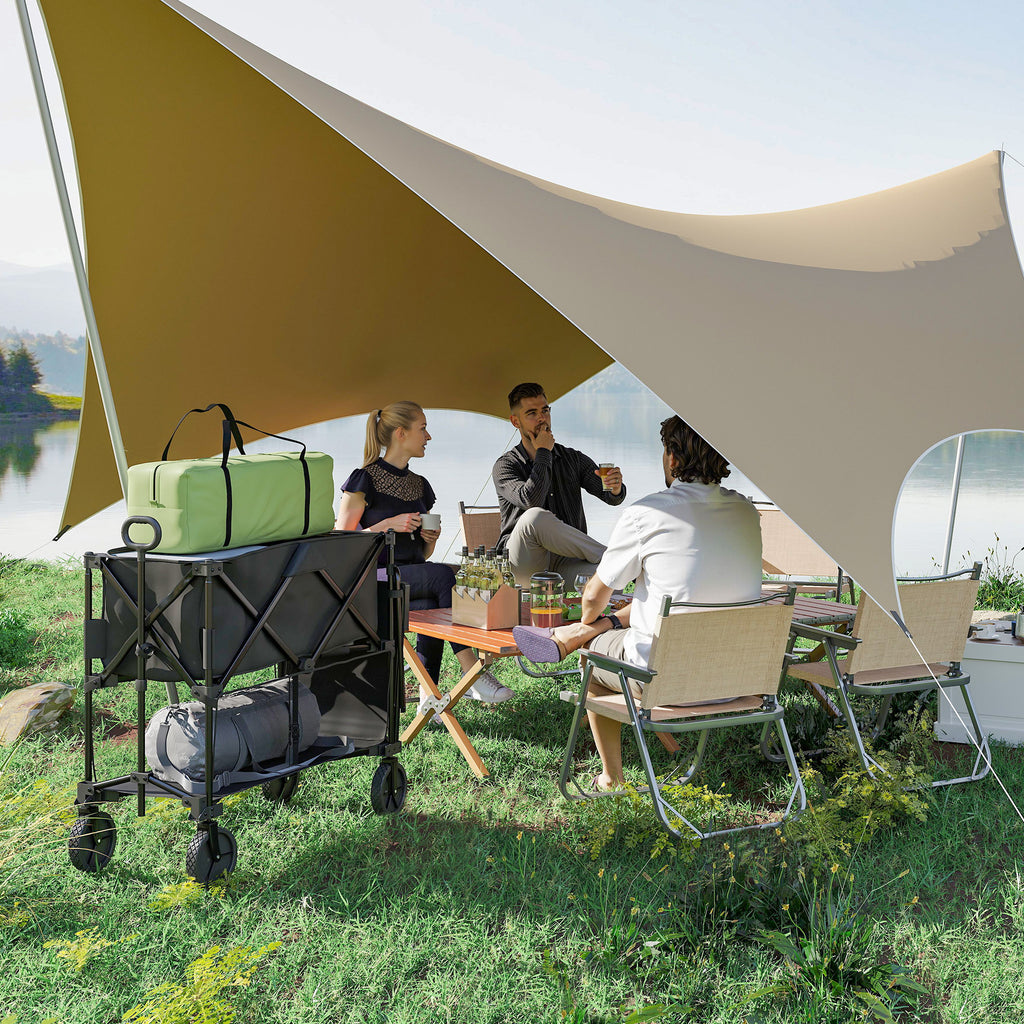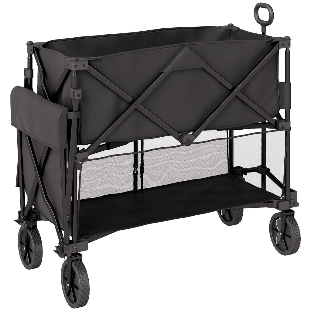Entdecken Sie den vielseitigen Outsunny Doppeldecker-Klappbollerwagen– unverzichtbar für alle Outdoor-Liebhaber! Dank der zwei Ebenen verdoppelt sich der Stauraum, perfekt als Camping- oder Gartenwagen. Ziehen Sie mühelos bis zu 200 kg mit dem stabilen Stahlrahmen des Leiterwagens und bewegen Sie sich leicht über jedes Terrain mit den All-Terrain-Rädern. Ideal für Treffen, Angelausflüge oder den Einsatz im Garten.