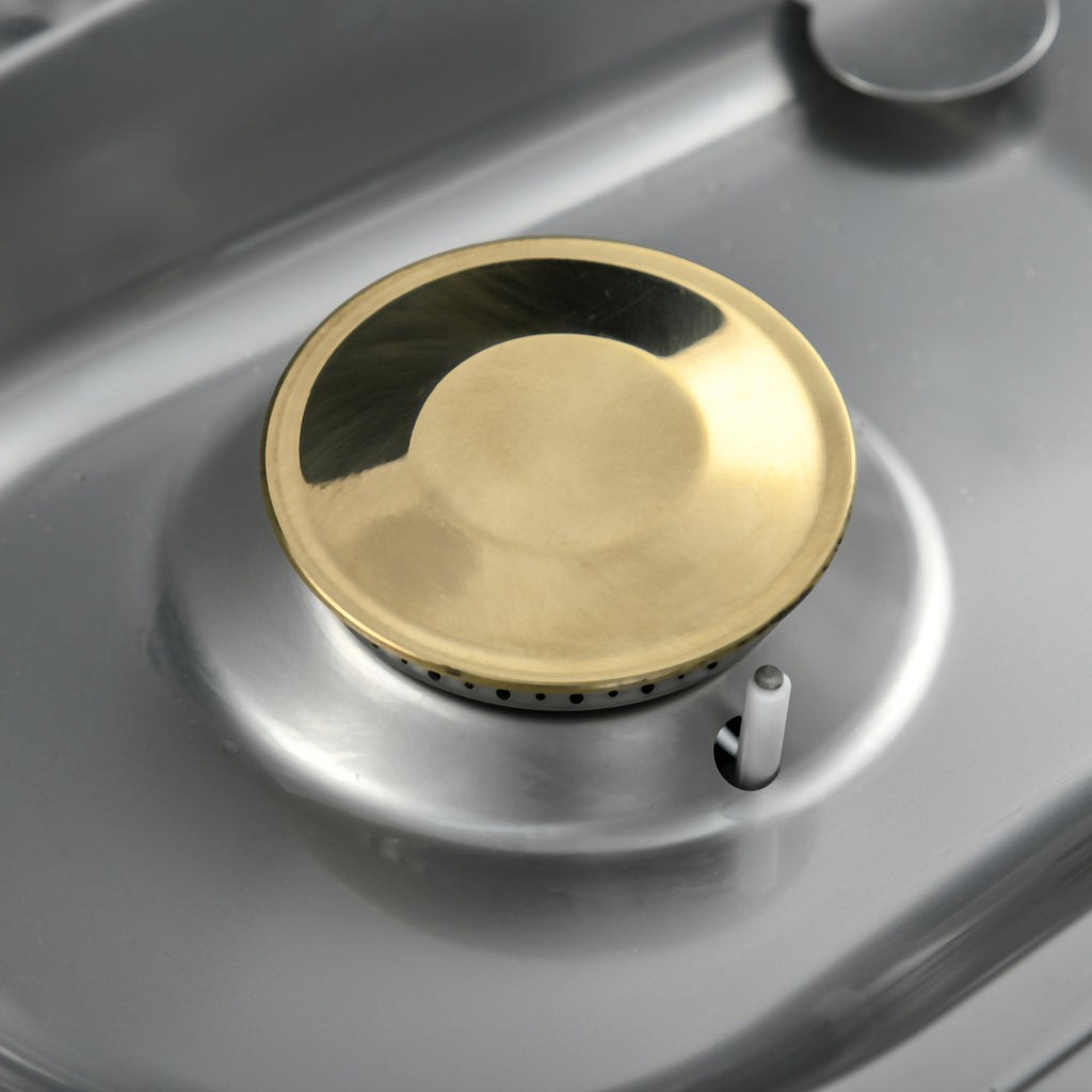 - Verschließbarer Deckel des Gasgrills zum Speichern von Wärme und zum Räuchern von Lebensmitteln. Thermometer am Deckel, um die Innentemperatur zu überprüfen